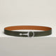VERT-DE-GRIS / GOLD-NOIR / ÉBÈNE CASAQUE BELT BUCKLE & REVERSIBLE LEATHER STRAP 32 MM