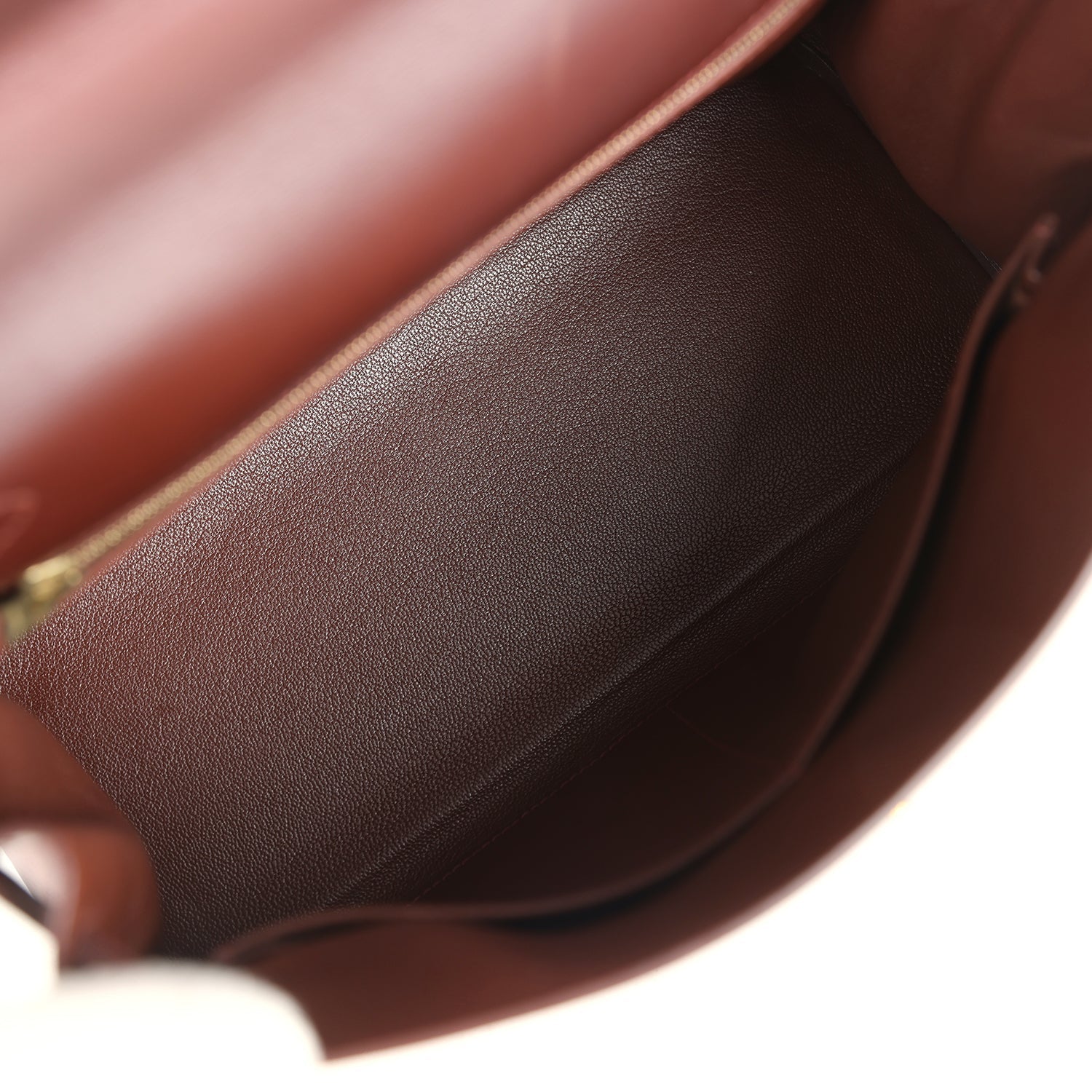 The interior is lined with Noisette chevre and features one zip pocket with an engraved pull and two open pockets on the opposite side.