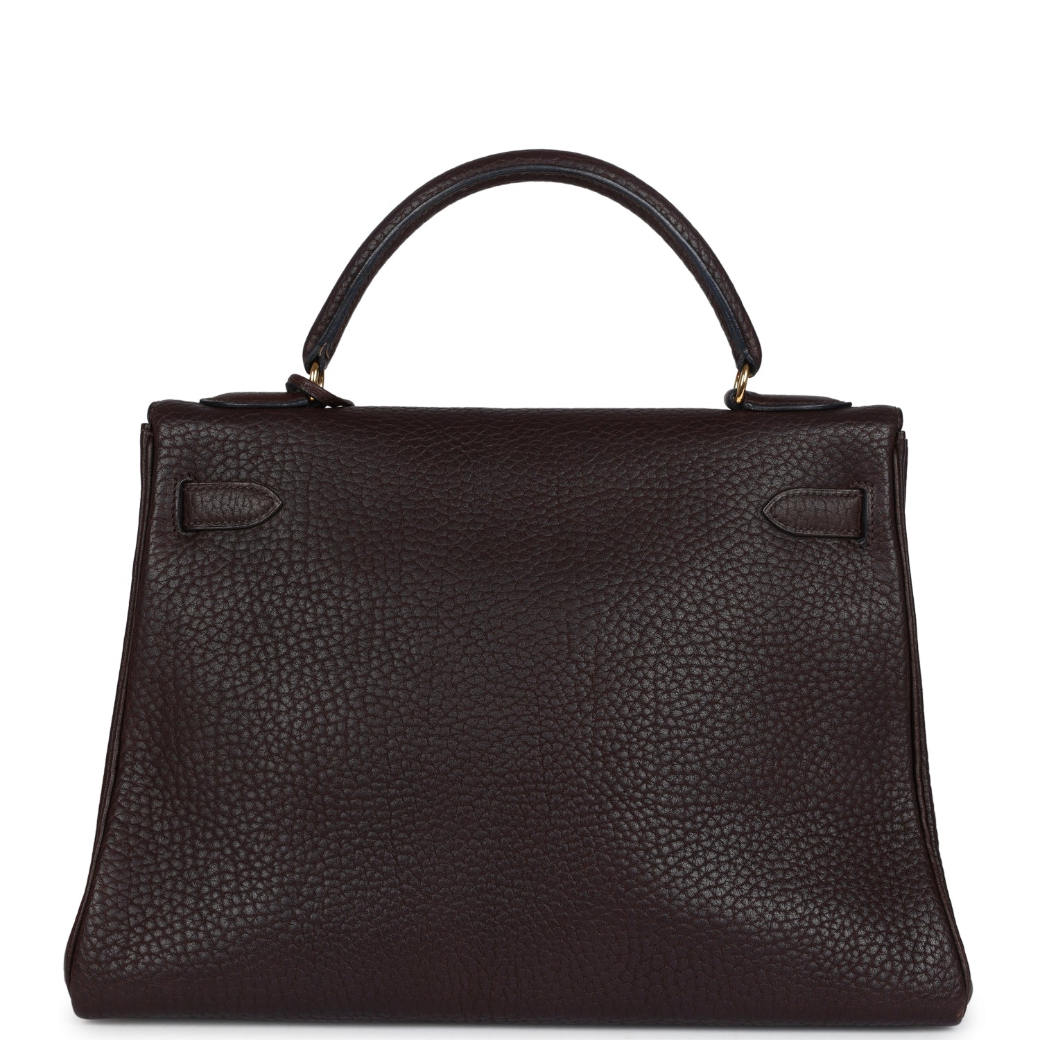 Vintage Kelly Retourne 32 Marron Fonce Fjord Gold Hardware