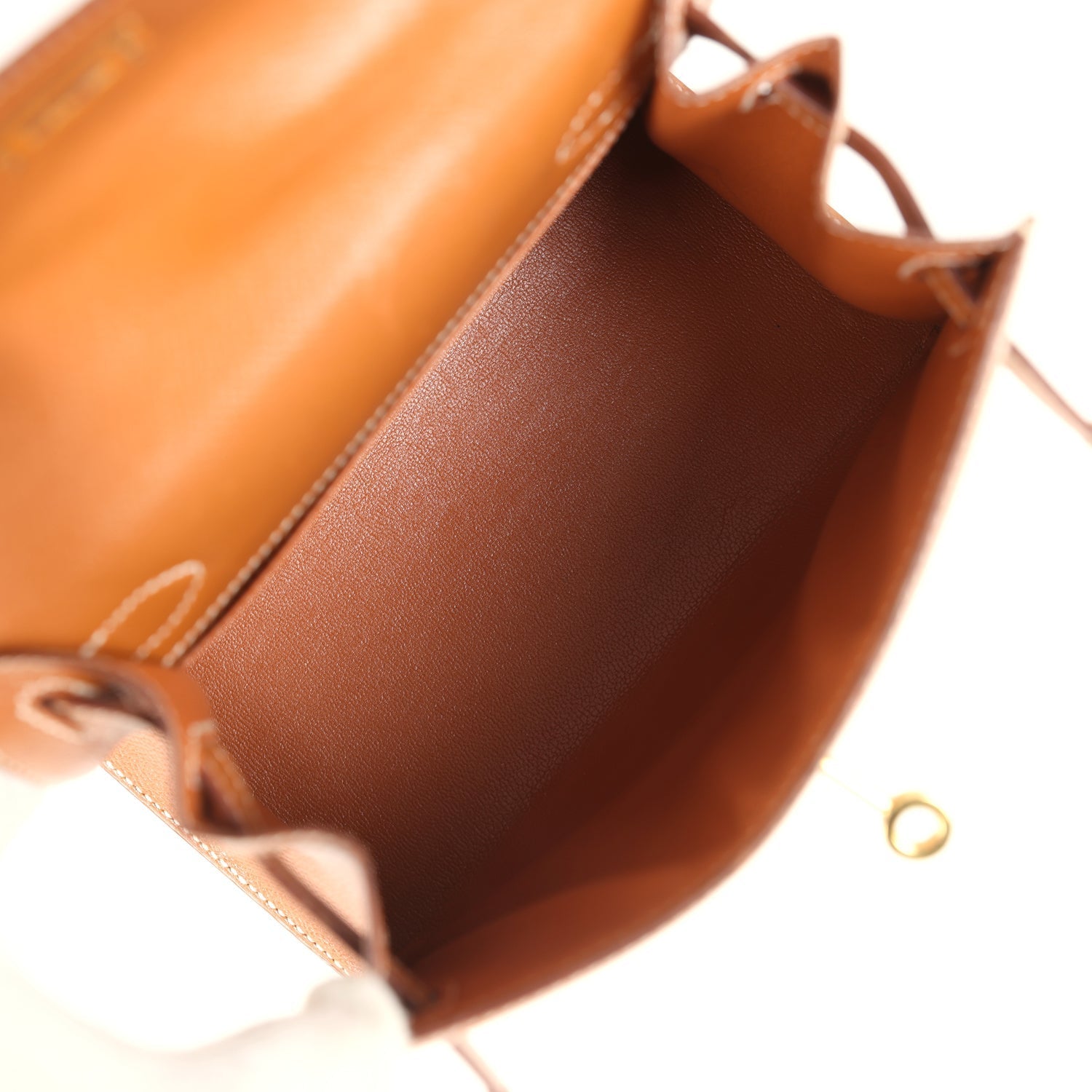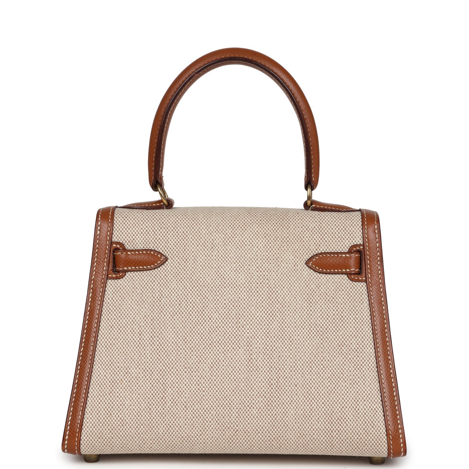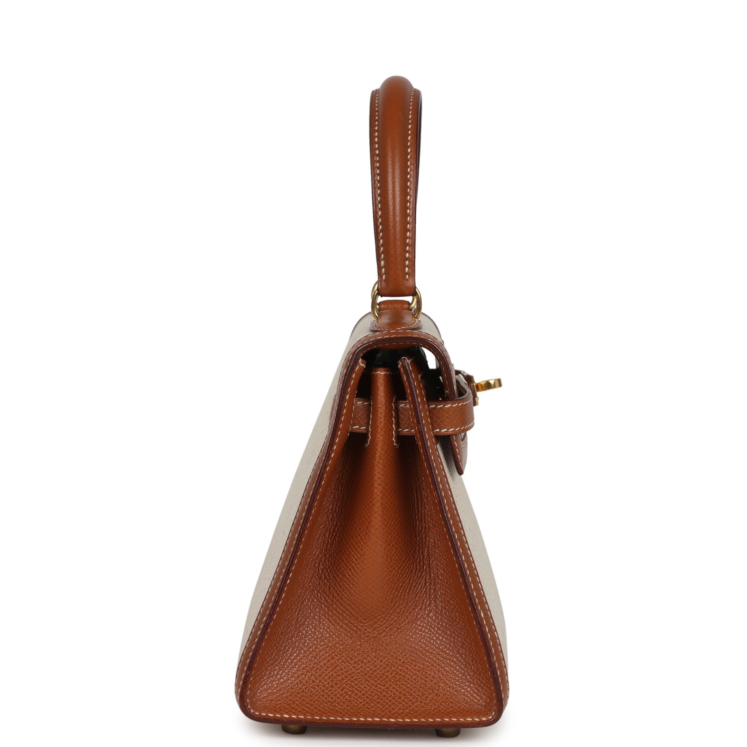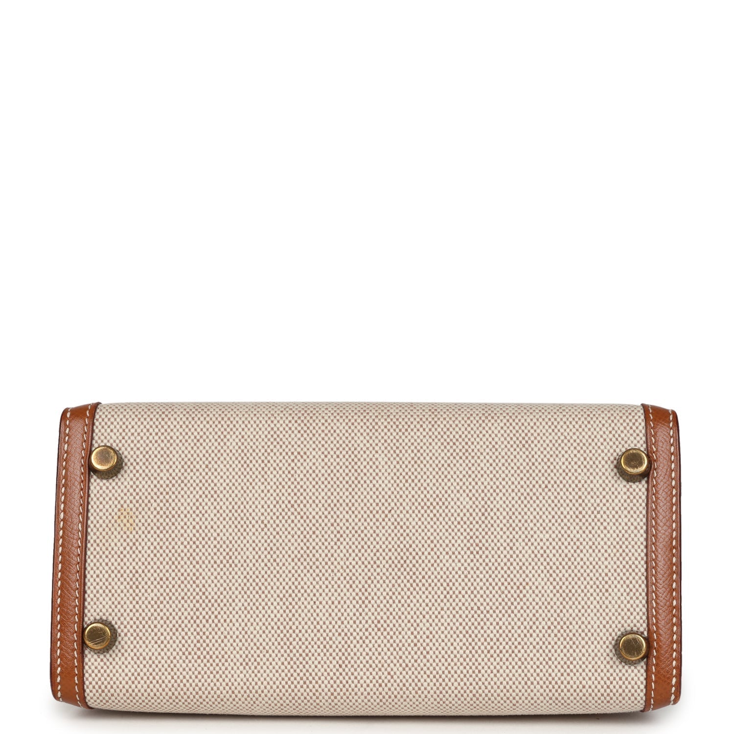 Vintage Kelly Sellier 20 Gold Courchevel and Ecru-Beige Toile H Canvas Gold Hardware