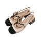 This shoe features an elegant classic design, combining the Light beige colour of the upper leather, with a shiny black front that adds the shoe with a belt and is made in the form of a silver metal chain with a small detail in the shape of a pearl or button when closing, which gives a touch of sophistication and elegance.