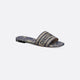 Part of the Dioriviera capsule, the Dway slide is a hallmark and timeless style featuring a denim blue Toile de Jouy Sauvage motif. The denim blue jacquard upper is embroidered with the Christian Dior Paris signature in ecru raffia for an instantly recognizable touch, while the minimalist silhouette will slip on easily to complete a laid-back outfit. The shoe can be paired with other creations from the Dioriviera capsule.