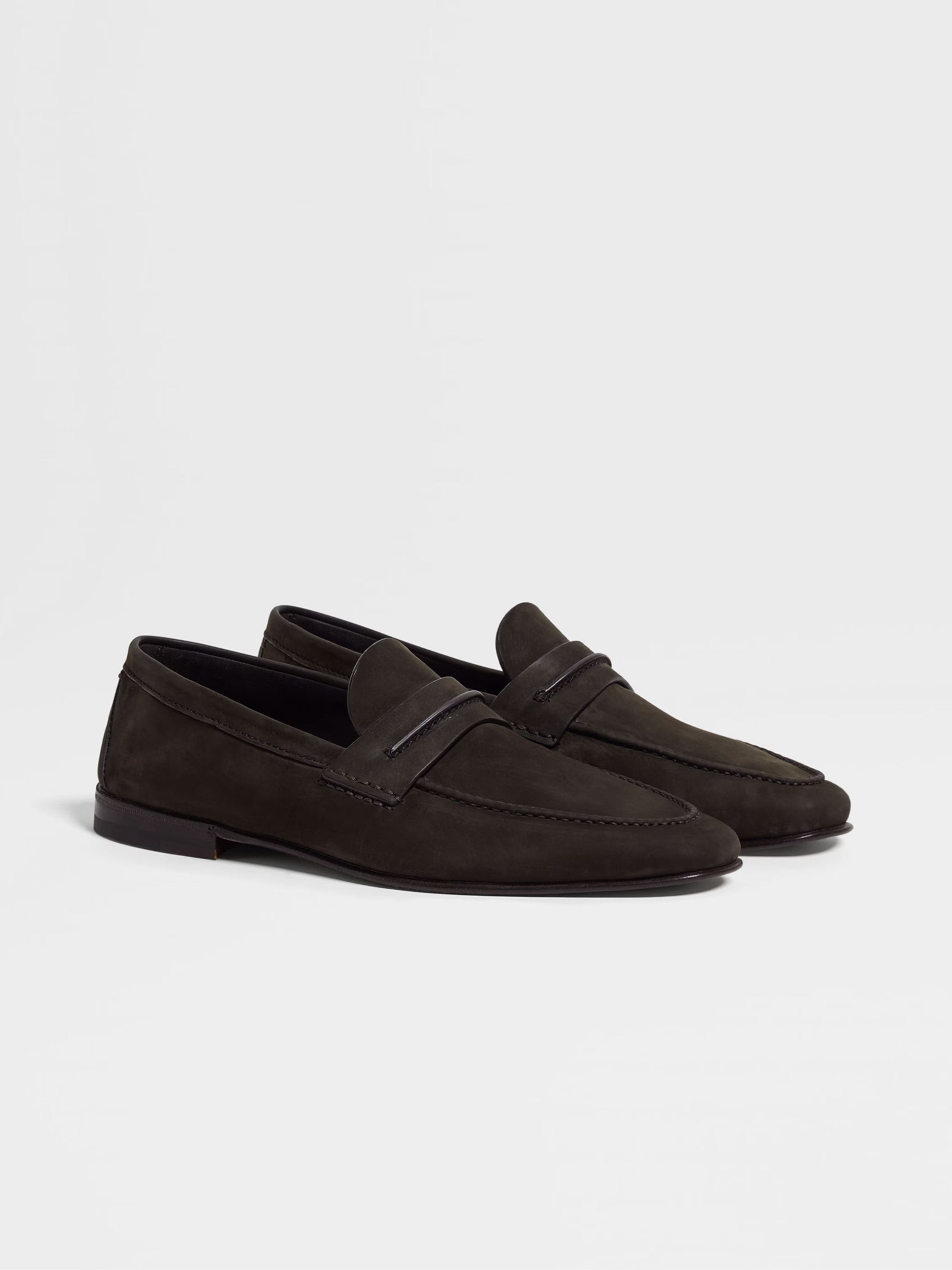 xtremely soft leather in an elegant dark brown traces the timeless lines of this SECONDSKIN Mocassin loafer. Crafted from the finest materials and designed for exceptional flexibility, every pair is meticulously hand-finished by experienced Artisans in order to obtain a luminous and refined shadowing. This SECONDSKIN Mocassin loafer is finished with a hand-stitched band featuring the signature ZEGNA 232 Road Brand Mark and a leather sole with rubber injection.