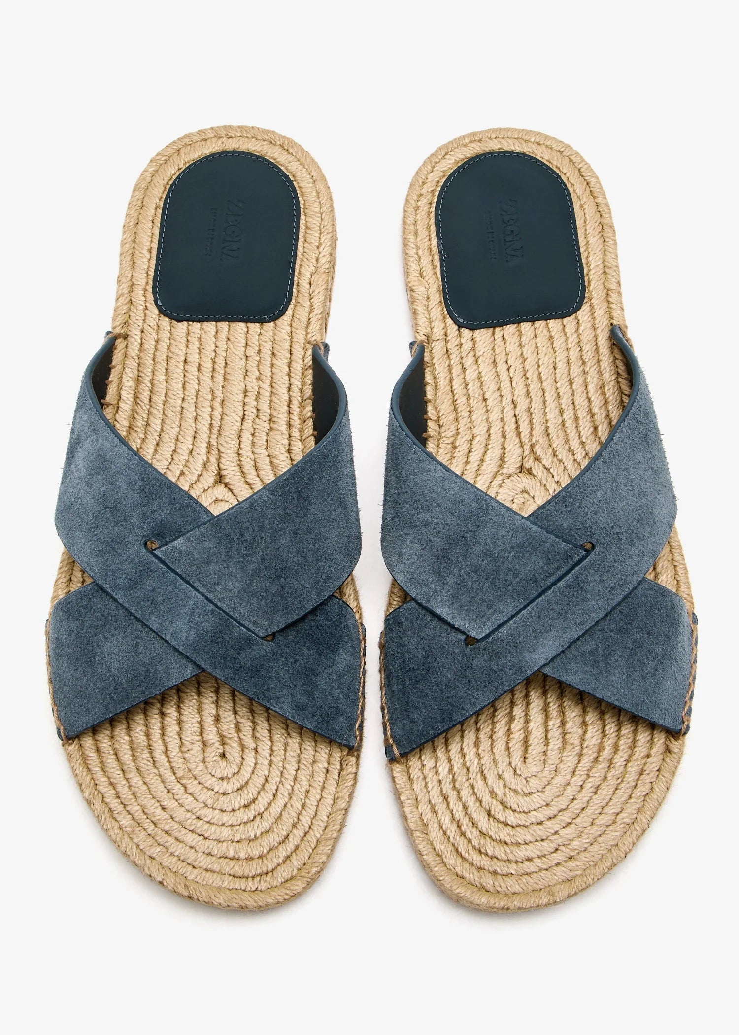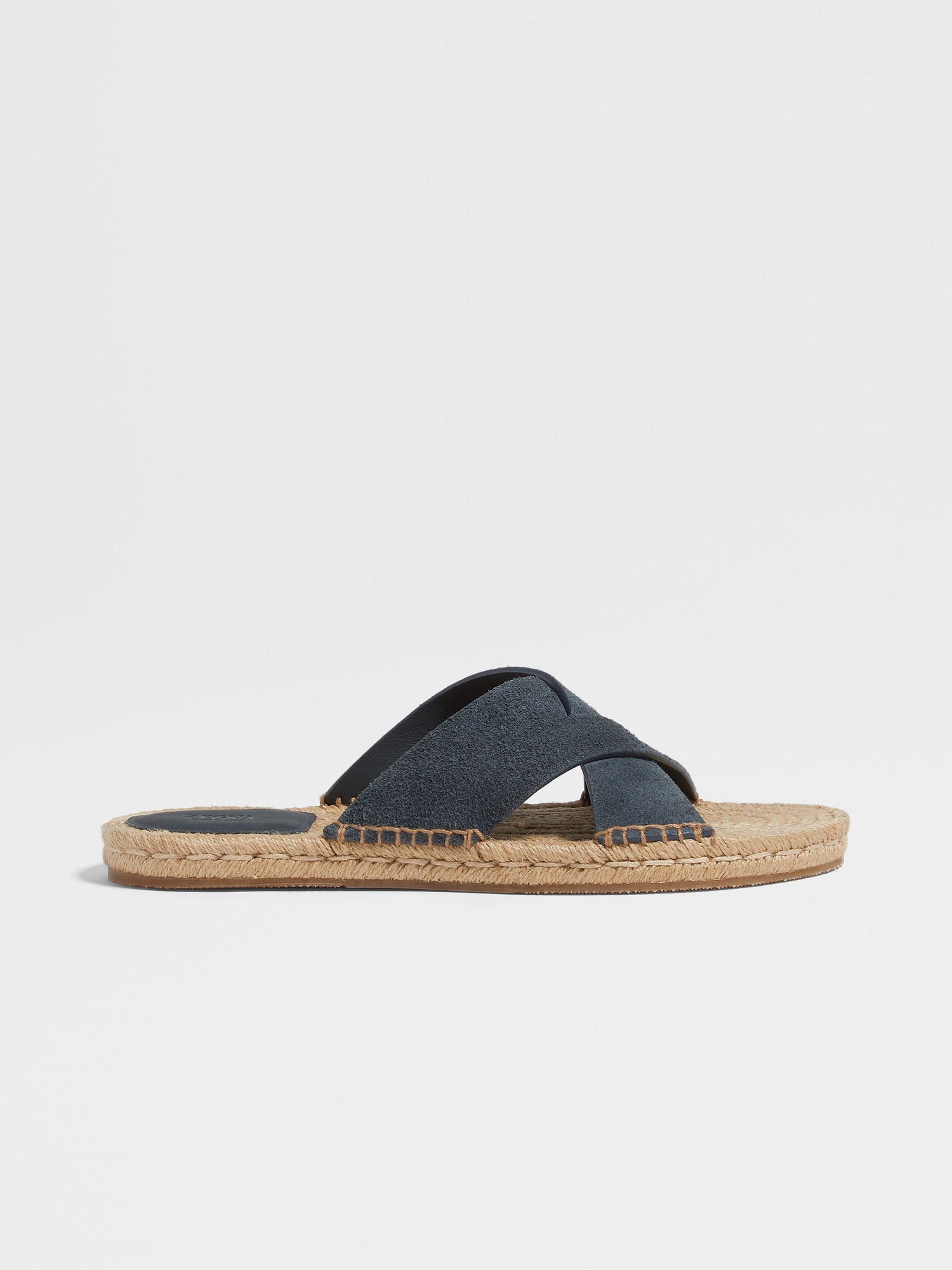 Crafted from luxury materials, the dark teal blue suede espadrille sandals exemplify Zegna's vision of effortless elegance. The roped midsole is paired with a durable rubber outsole.