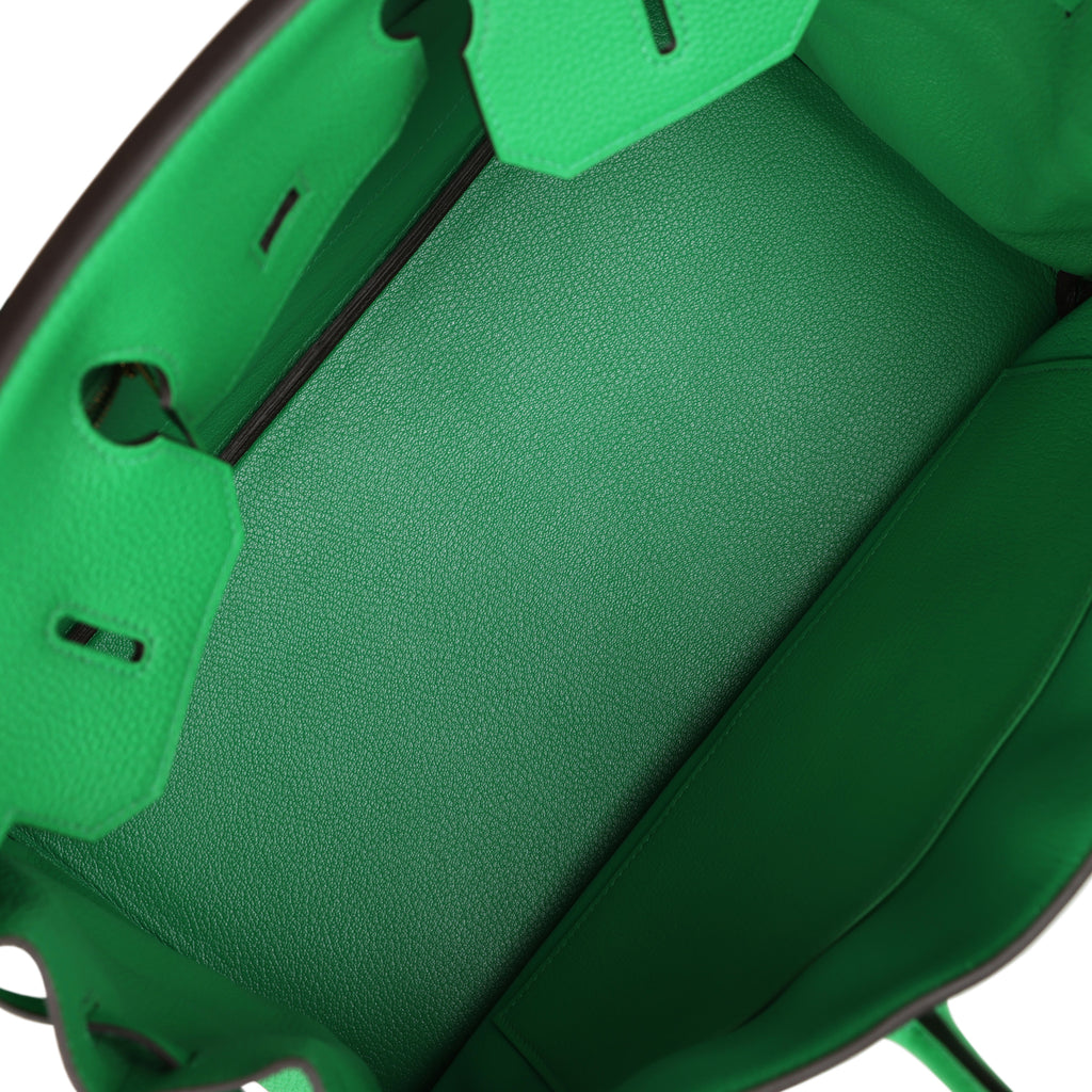 The interior is lined with Bambou chevre and has one zip pocket with an Hermès engraved zipper pull and an open pocket on the opposite side.