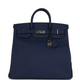 This HAC Birkin 40 is in Bleu Saphir togo leather with palladium hardware and has tonal stitching, two straps with HAC toggle closure, clochette with lock and two keys and double rolled handles.