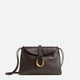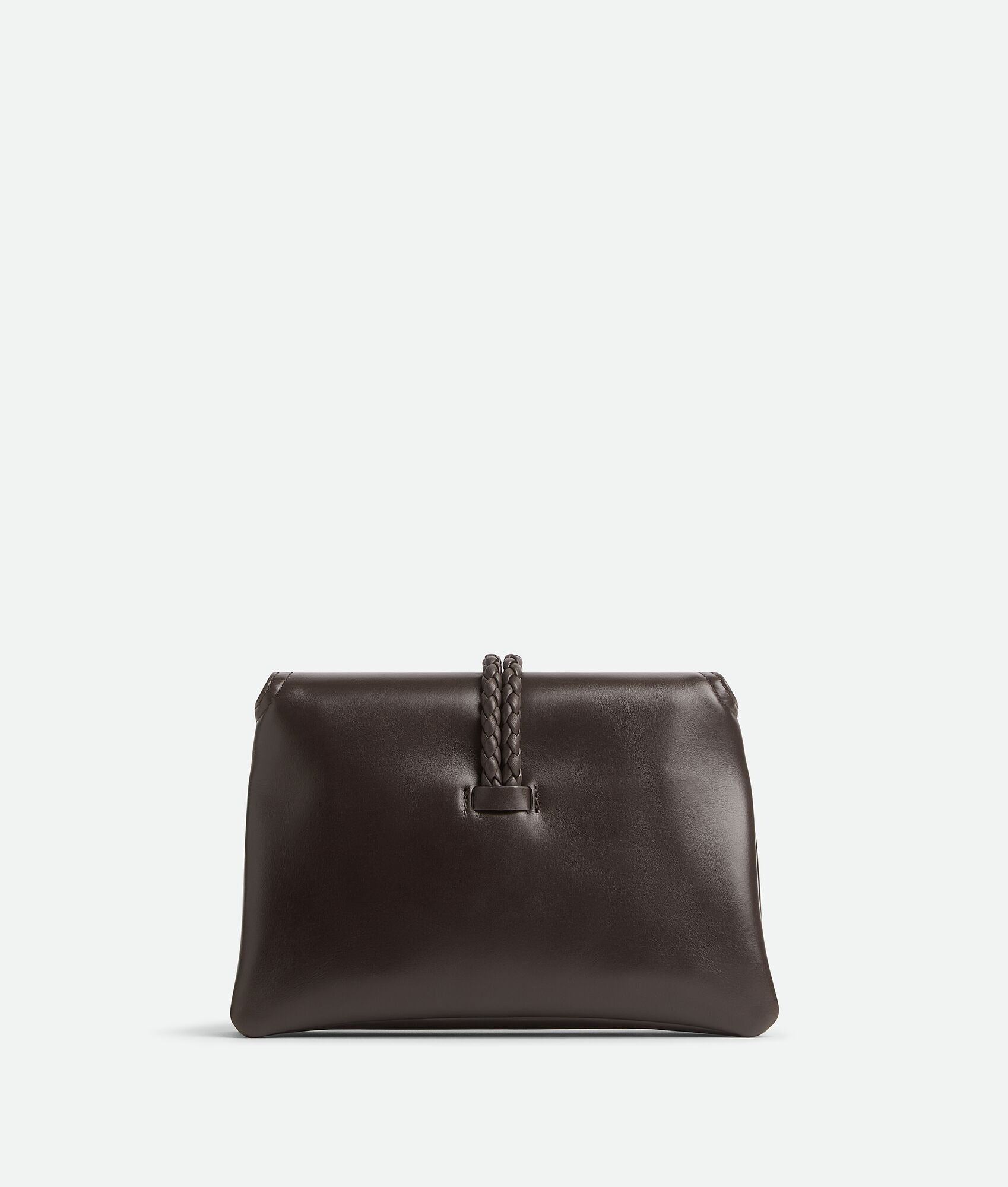 Cross-body bag in smooth calf leather with double flap. Fastened with a sculptural metal closure and leather coaxial cord.