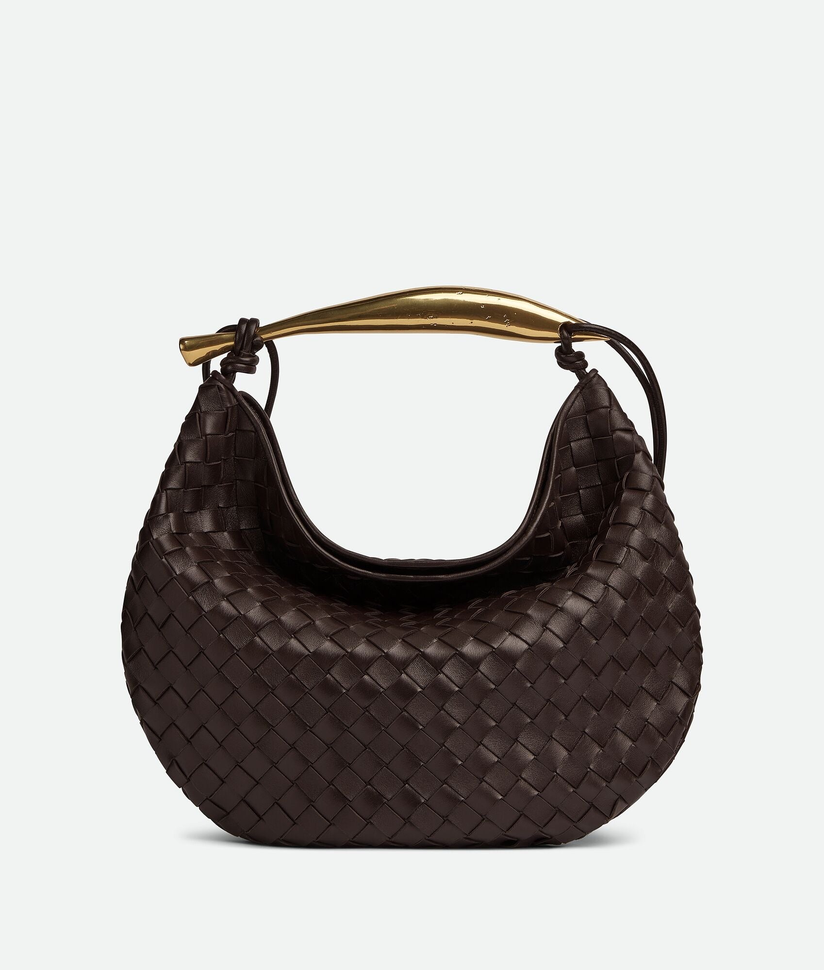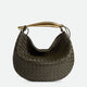 Shoulder bag with Intrecciato craftsmanship in lambskin leather with sculptural metallic top handle and shoulder strap.