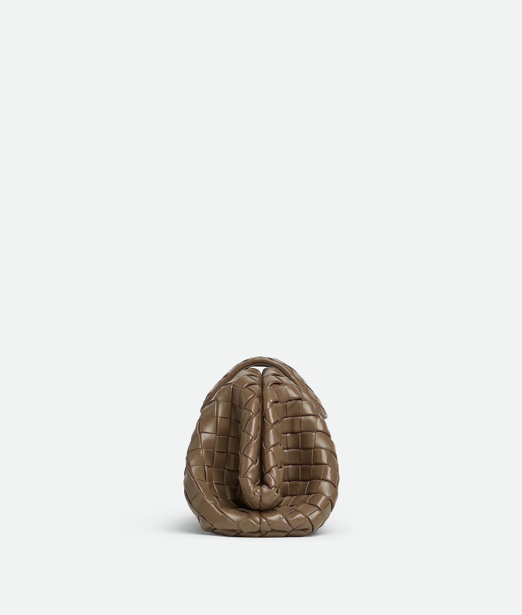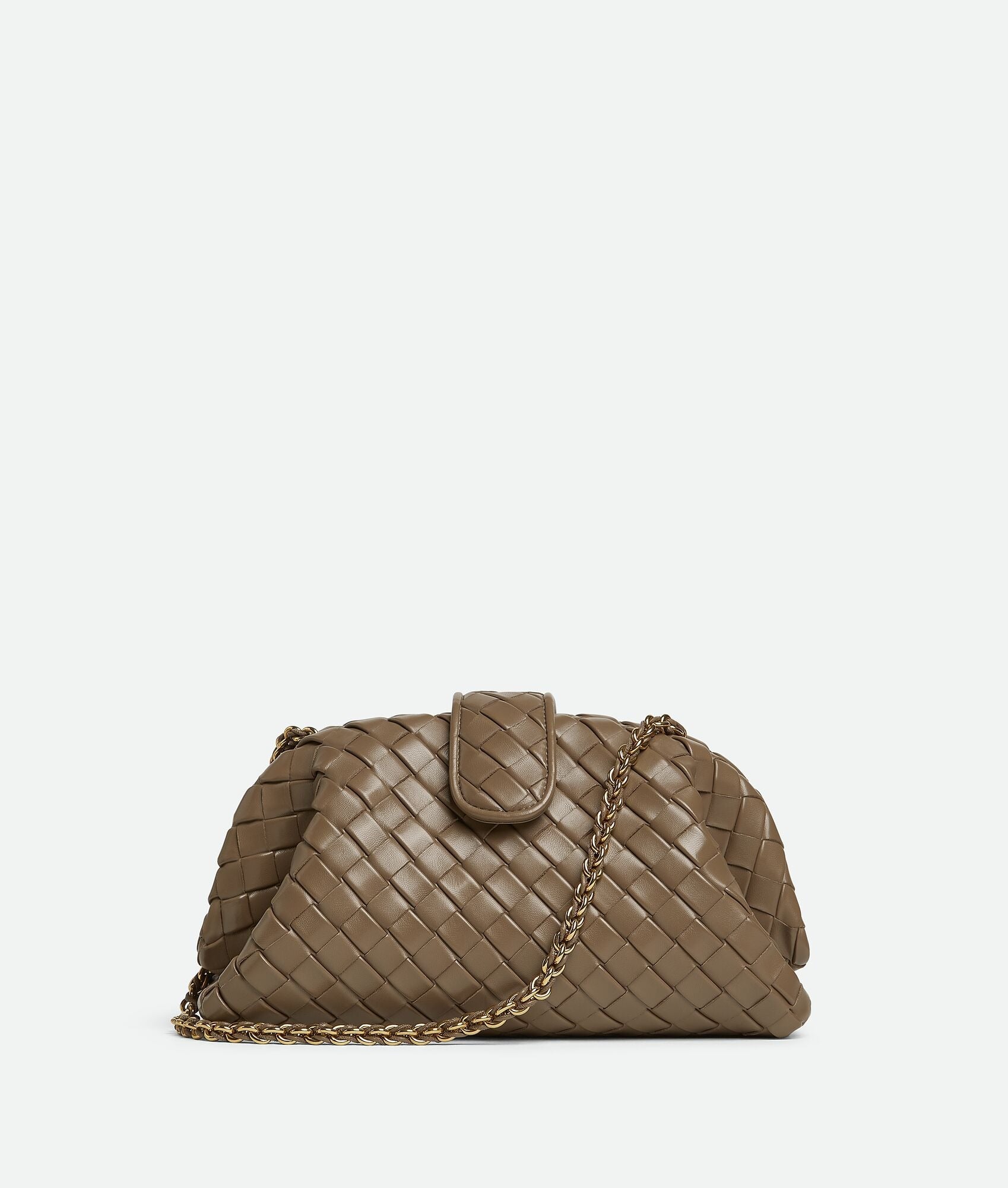 Lauren 1980 clutch in padded Intrecciato leather with tubular leather braided metal chain.