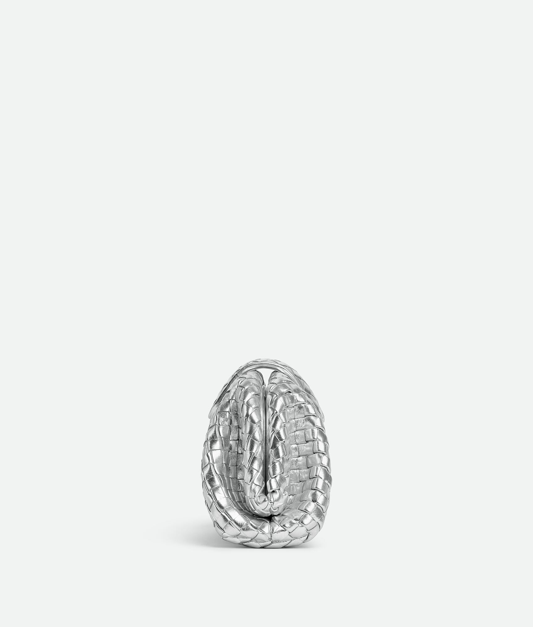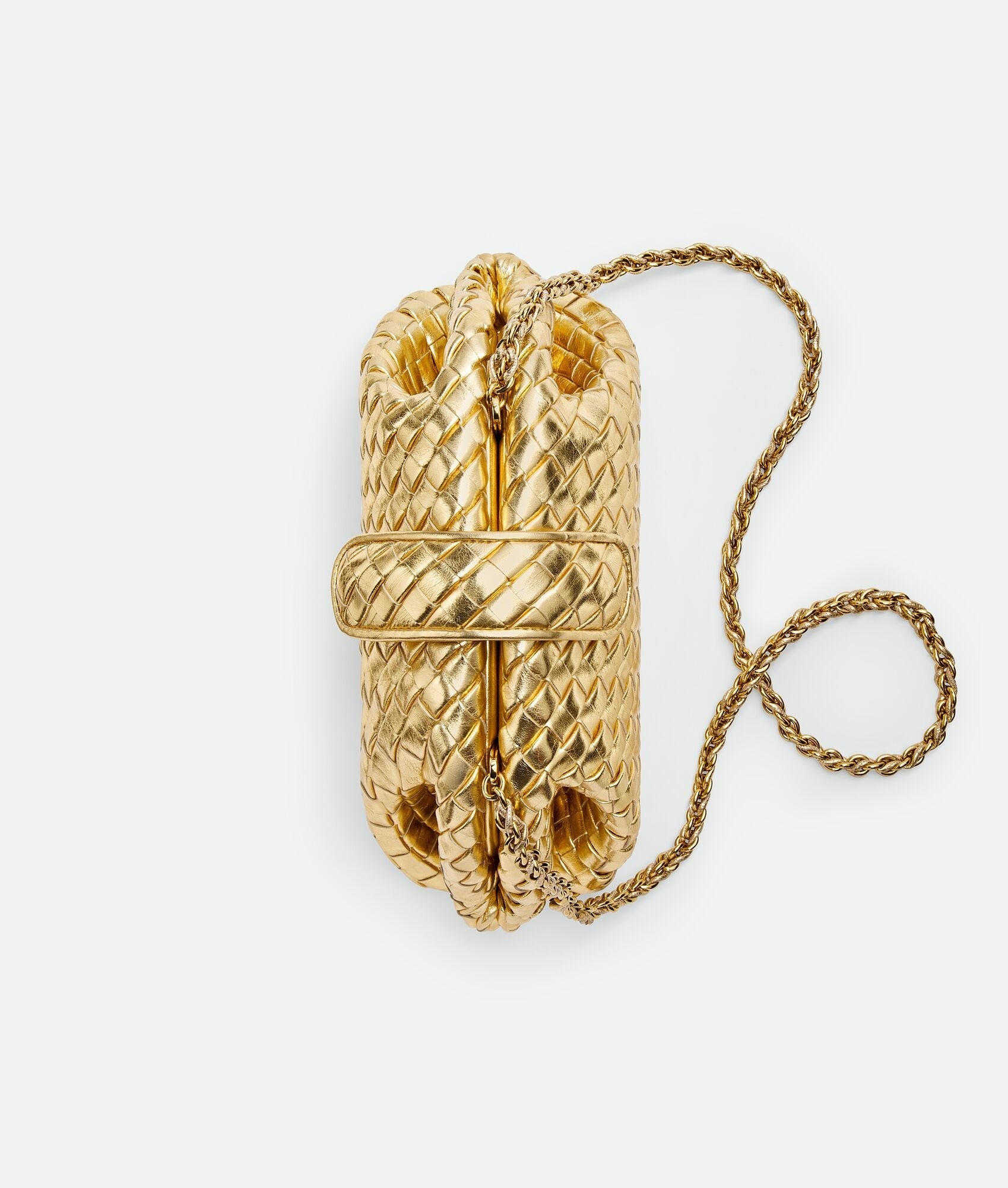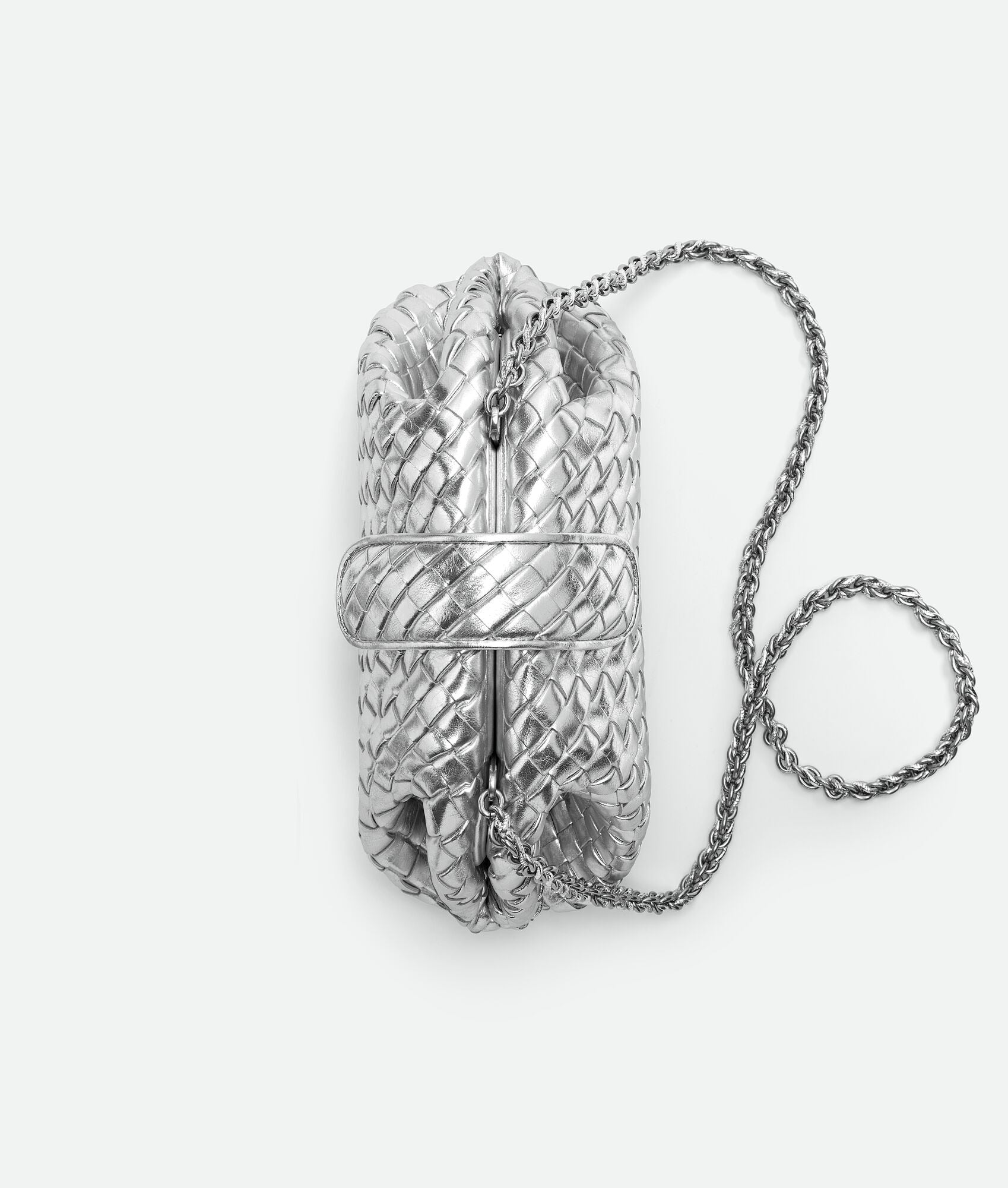 - Padded Intrecciato leather clutch with leather braided metal chain
