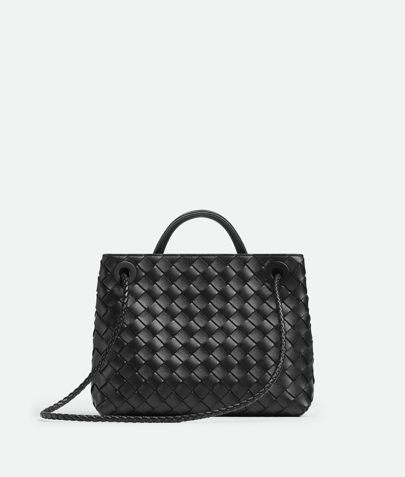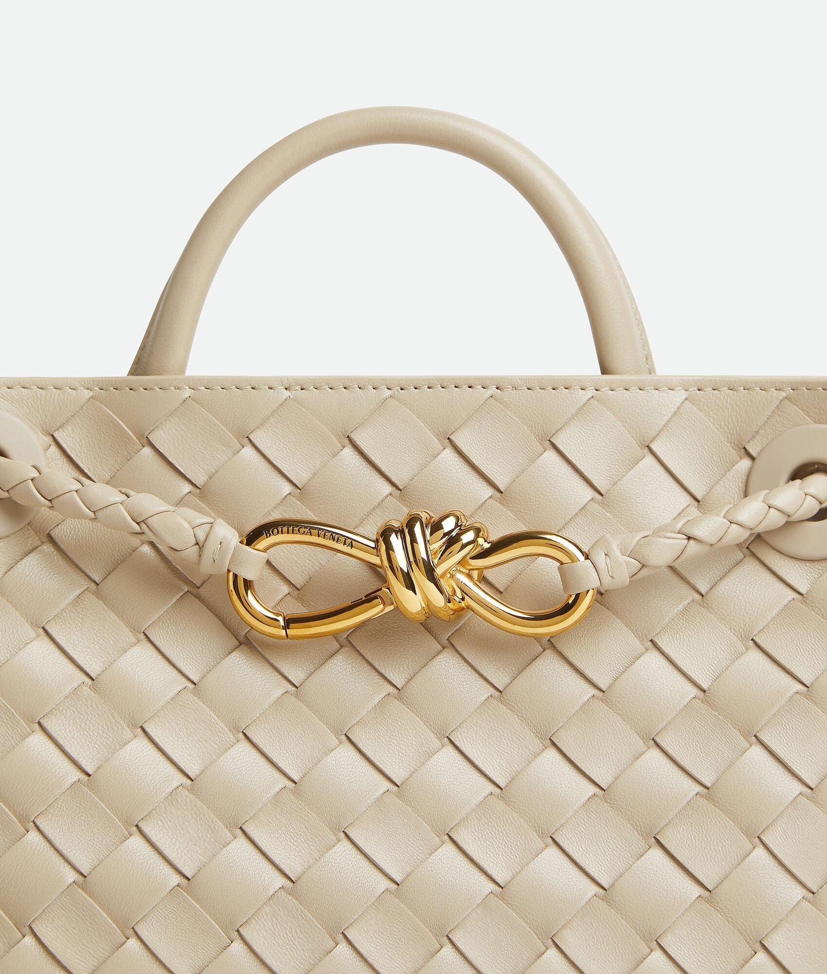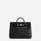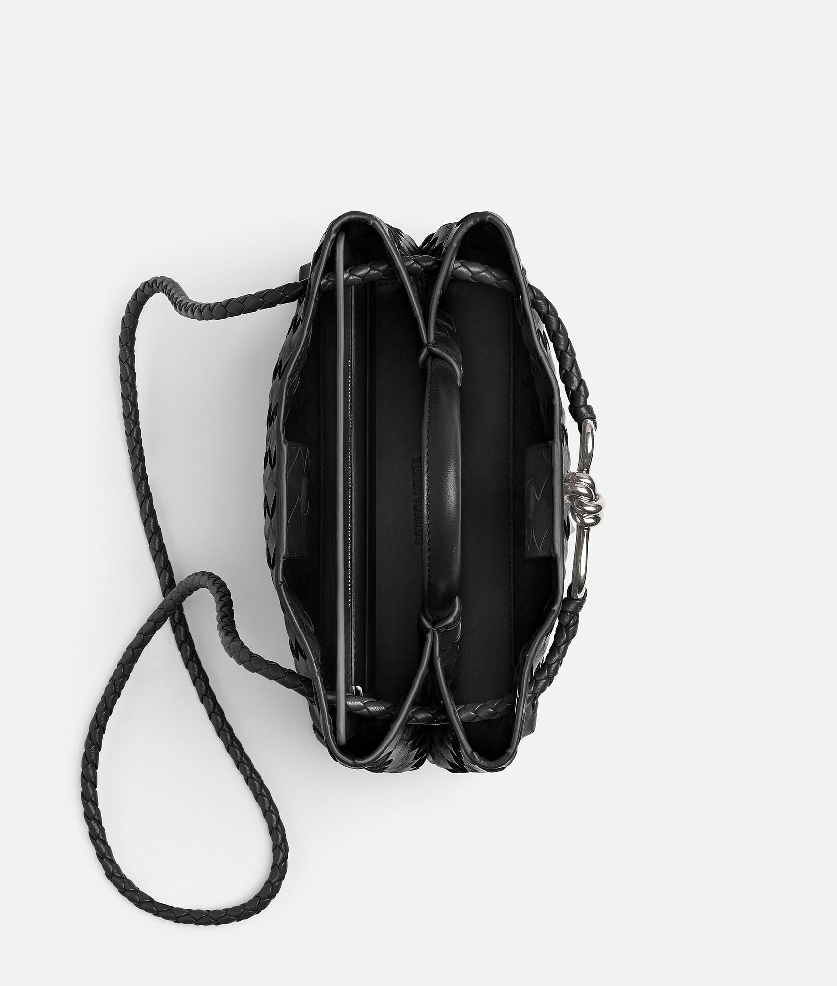 Top handle bag in Intrecciato leather with signature knot detail and sliding cross-body strap.
