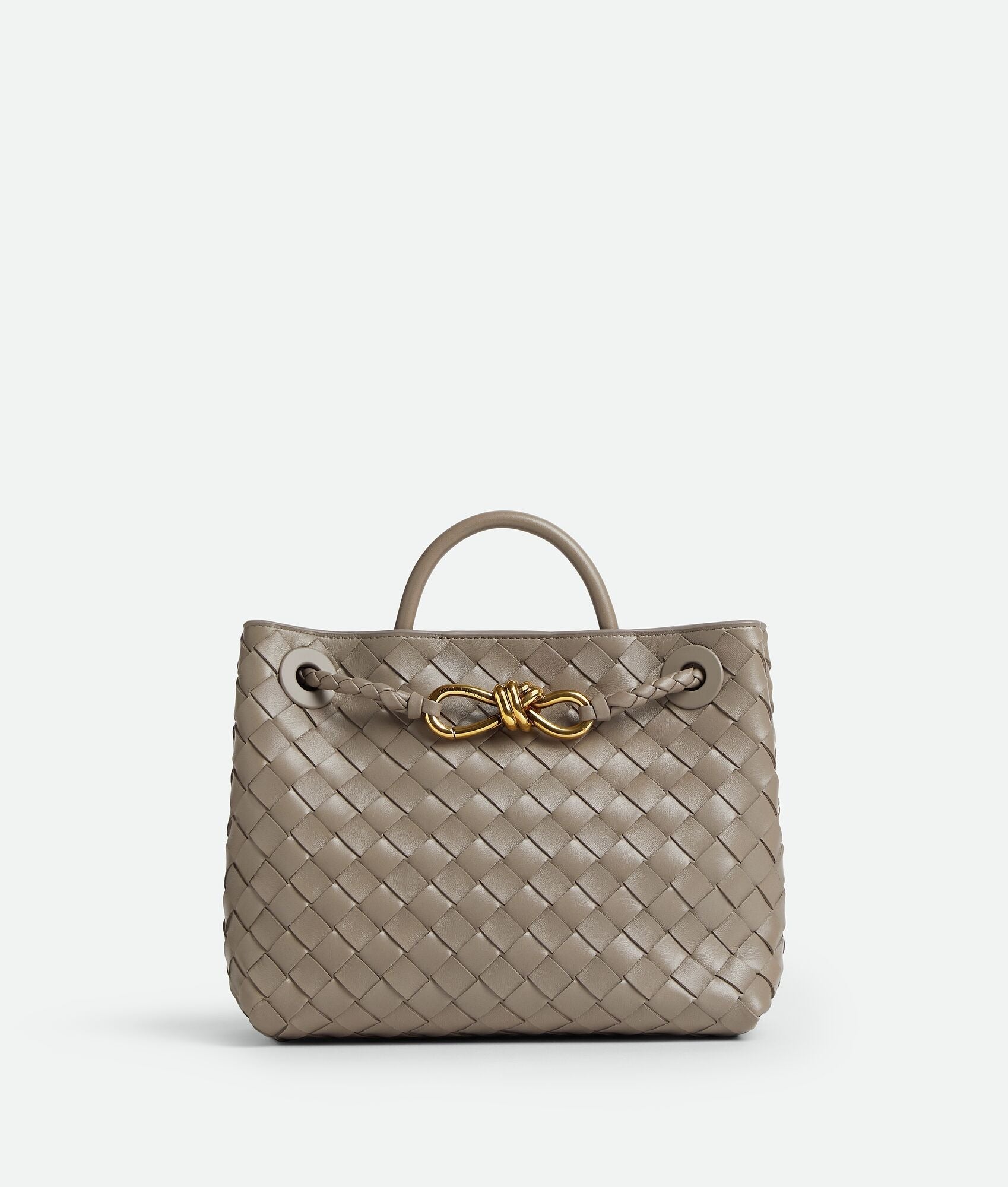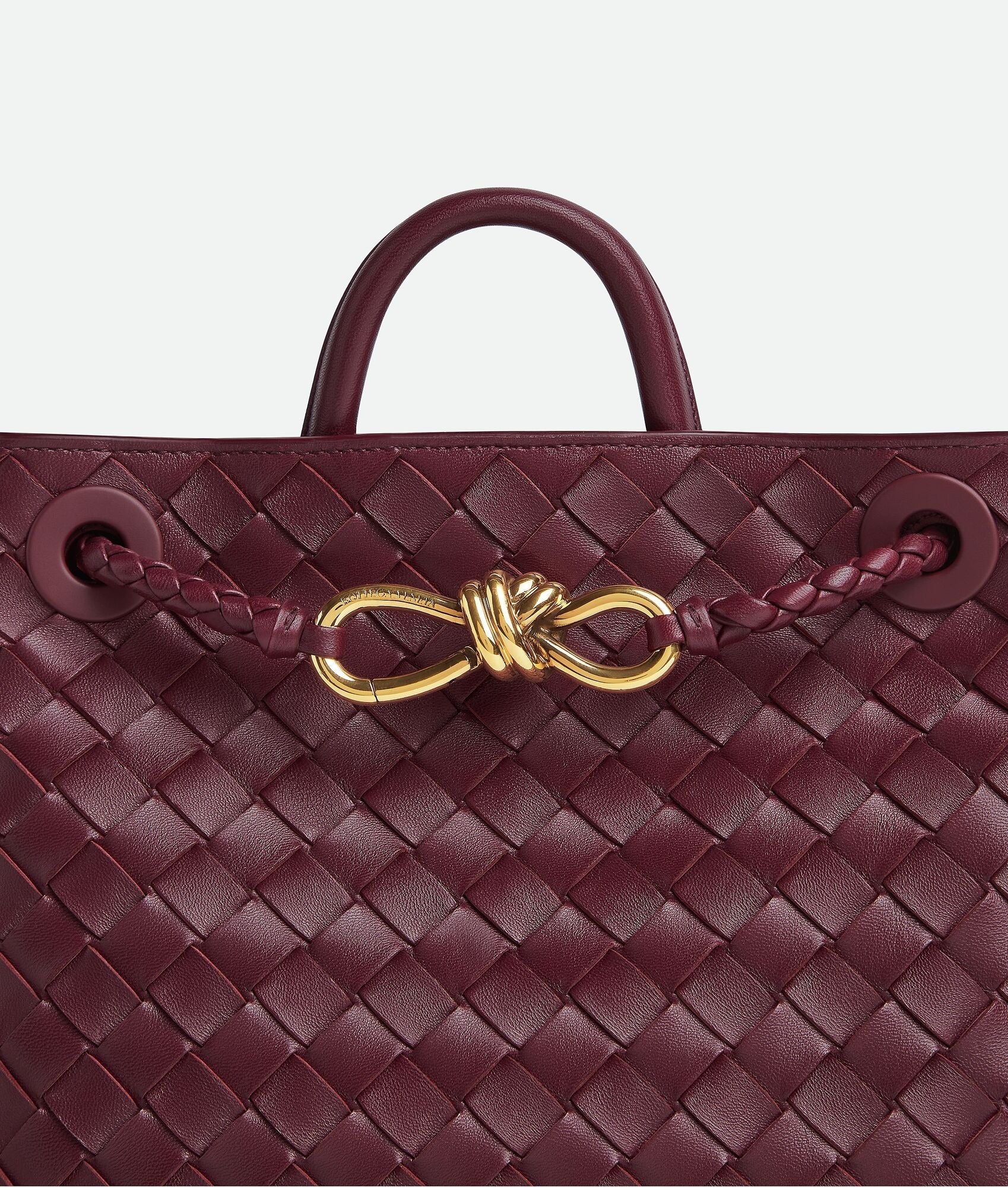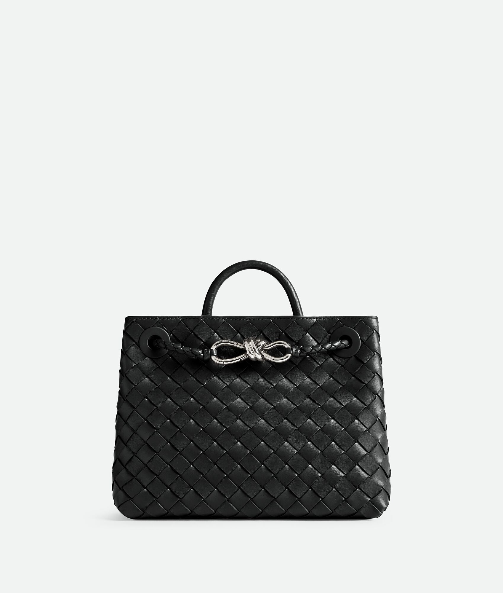 Top handle bag in Intrecciato leather with signature knot detail and sliding cross-body strap.