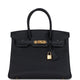 This Birkin is in Caban togo leather with gold hardware and has tonal stitching, front flap, two straps with center toggle closure, clochette with lock and two keys, and double rolled handles.