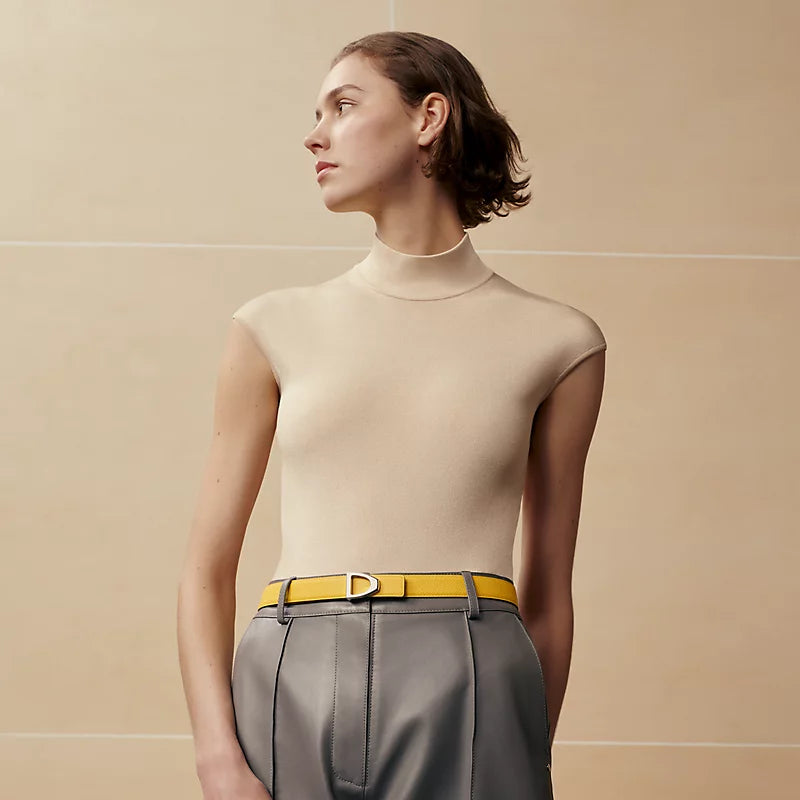Inspired by the equestrian world, this buckle is shaped like a stirrup, the Hermès' emblem. A delicate Hermès engraving adorns the edge of the buckle.