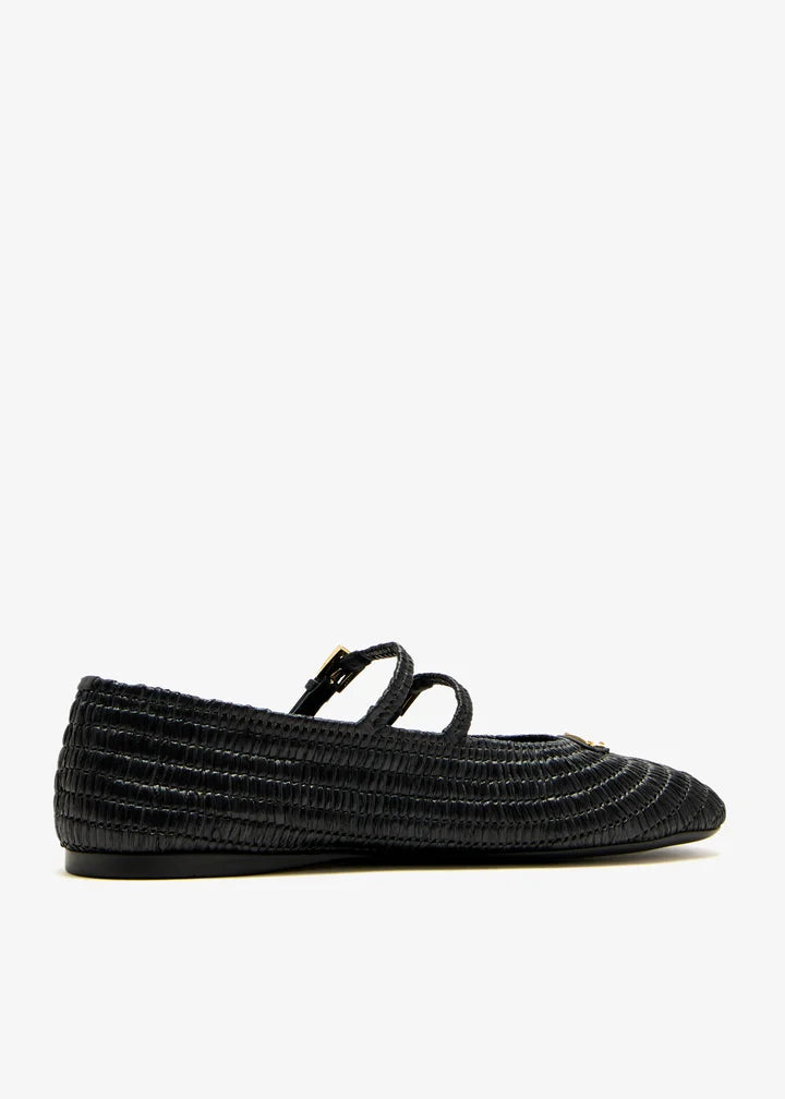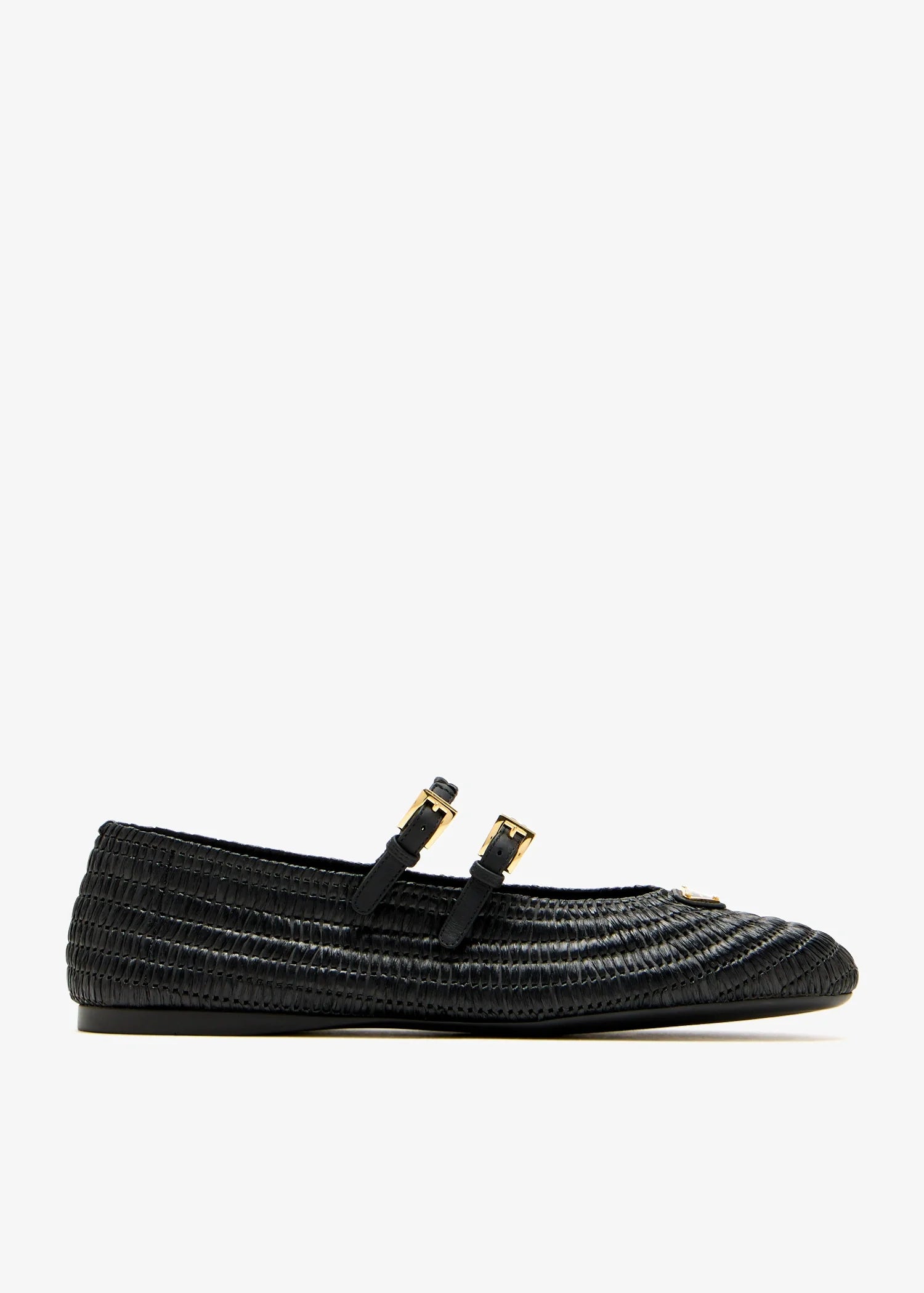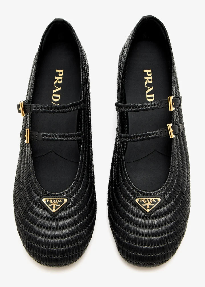 Exuding elegant, feminine charm, make your minimalist wardrobe pop with Prada's clean and classic Crochet ballerinas. Showcasing a refined and versatile silhouette with a crochet construction, they're fitted with a monoblock rubber sole, slim calfskin straps with adjustable buckles, and a small enameled metal triangle logo on the upper.