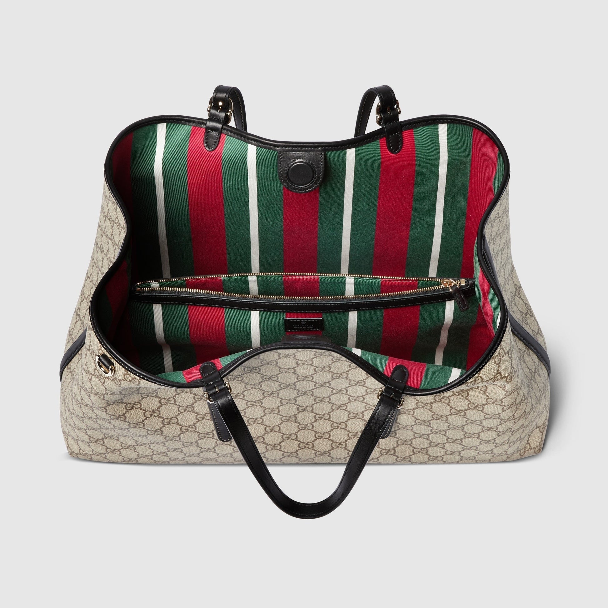 The new GG Emblem collection reinterprets the Maison's history of elegance and craftsmanship. This tote bag features numbered notches on the adjustable handles, inspired by the equestrian world.