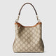 The new GG Emblem collection reinterprets the House’s history of elegance and craftsmanship. Thisbucket bag highlights functional design with an interior compartment, in Web cotton lining.
