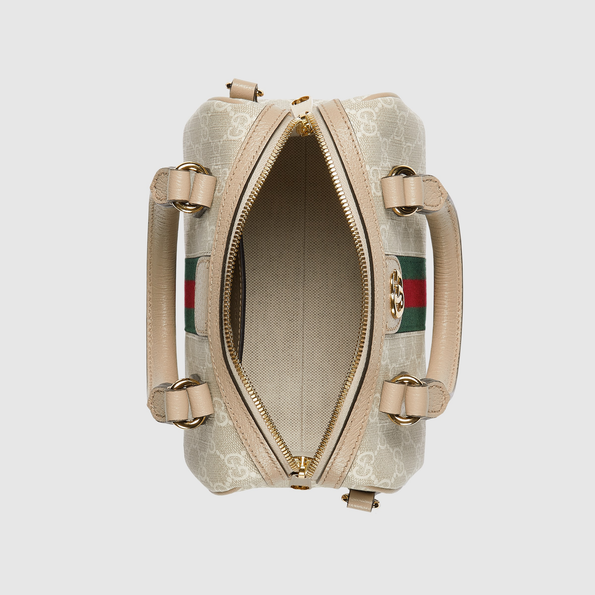 The GG Supreme, an iconic fabric, has become a staple of the Gucci universe. Reinterpreted from a Gucci perspective, the material appears in the latest collections. This mini top-handle bag is crafted with an all-over monogram motif. The exclusive Double G accessory completes the look by incorporating the logo image.