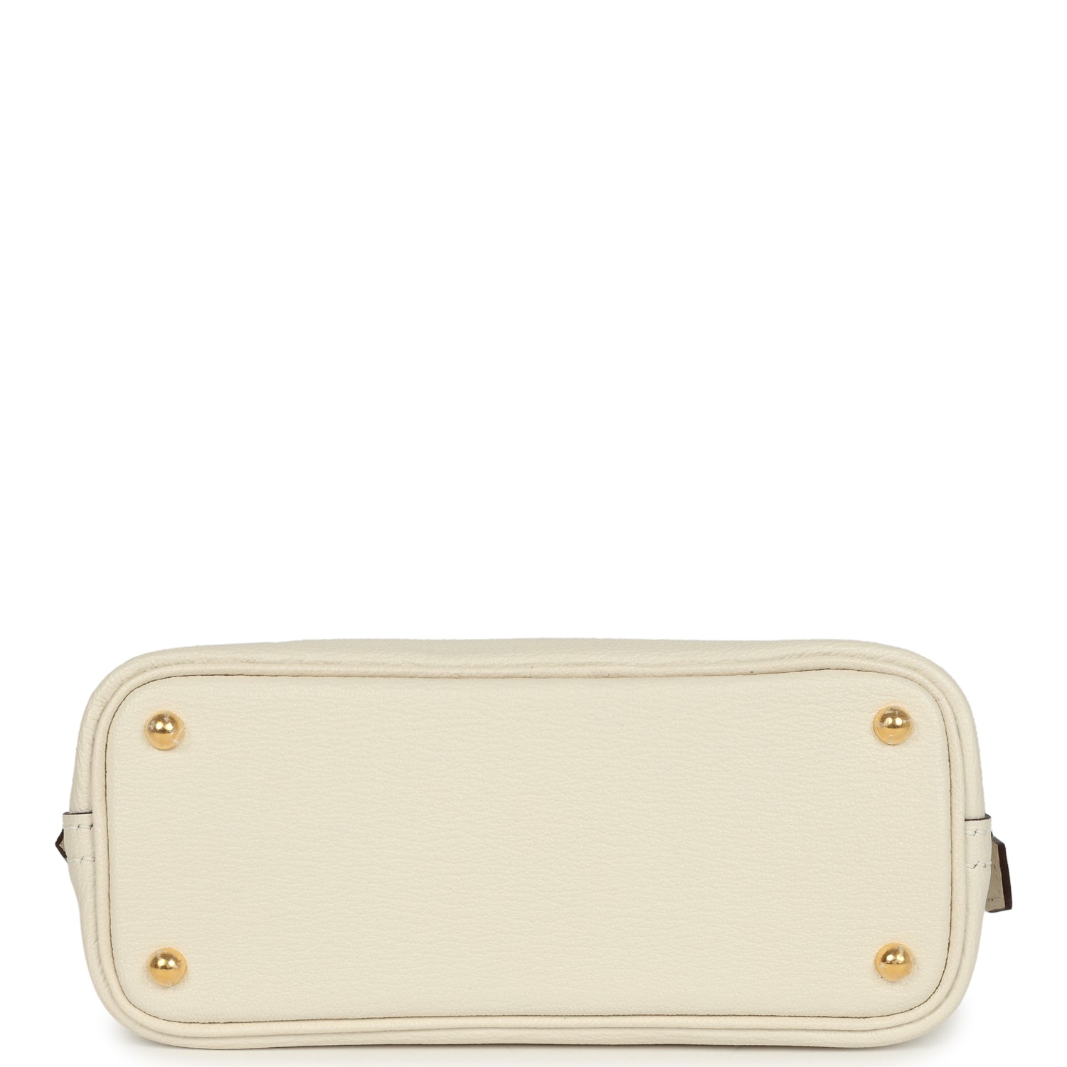 This Mini 1923 Bolide is in Nata Chevre Mysore leather with gold hardware, has tonal stitching, a top zipper closure, double rolled handles and a removable shoulder strap.