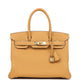 This Birkin is in Natural Sable togo leather with gold hardware and has contrast stitching, front flap, two straps with center toggle closure, clochette with lock and two keys, and double rolled handles.