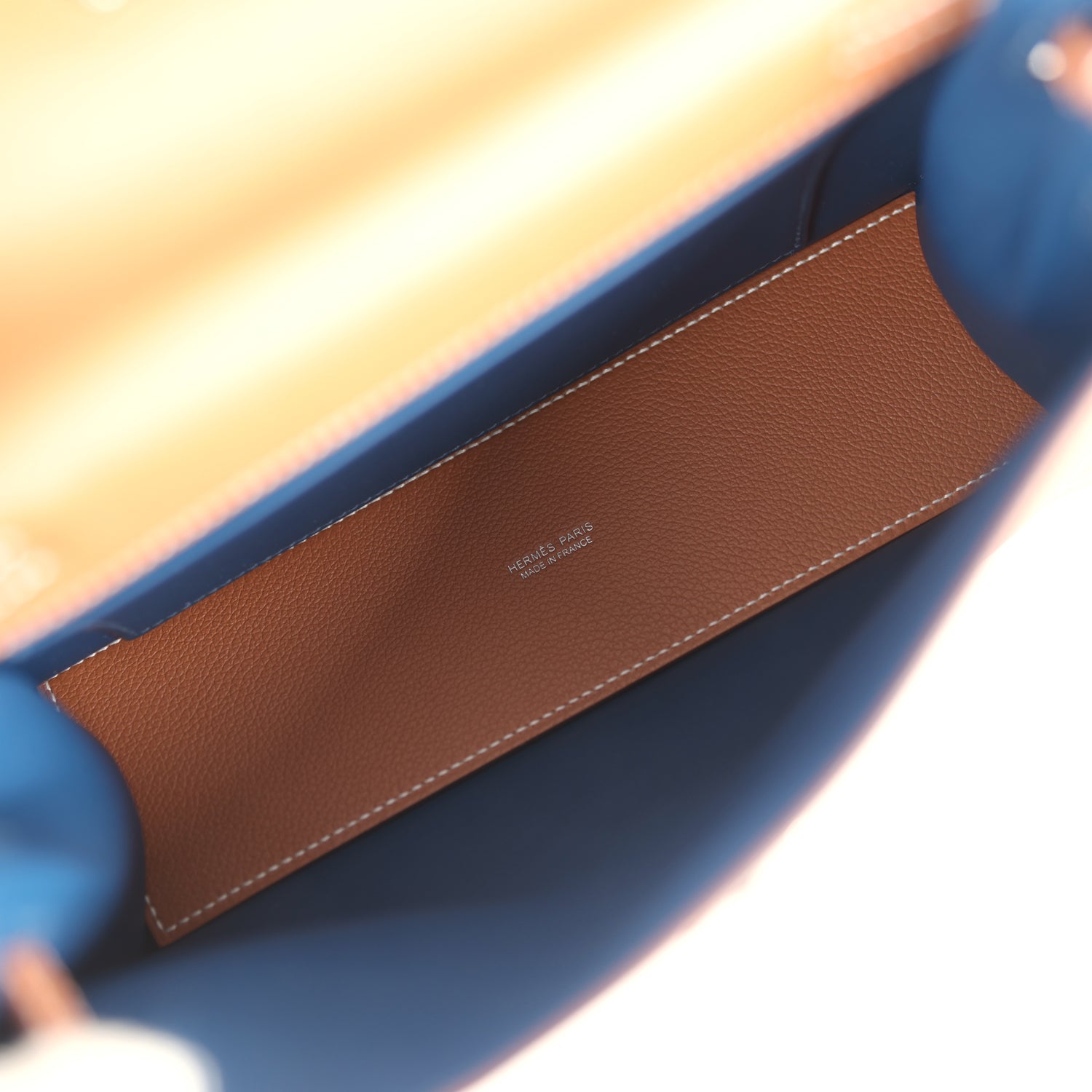 This Verso Kelly Danse is in Gold evercolor leather with palladium hardware and has contrast stitching, two straps with front flap closure and an adjustable flat shoulder strap for multistyle wear.