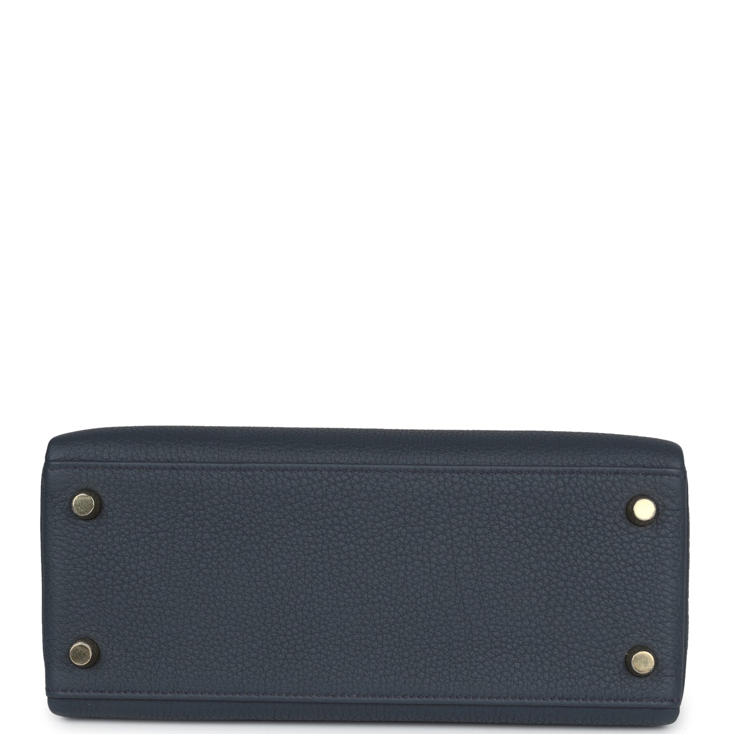 This Kelly, in the Retourne style, is in Gris Misty togo leather with permabrass hardware and has tonal stitching, two straps with front toggle closure, clochette with lock and two keys, single rolled handle and removable shoulder strap.