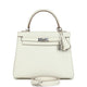 This Kelly, in the Retourne style, is in Mushroom togo leather with palladium hardware and has tonal stitching, two straps with front toggle closure, clochette with lock and two keys, single rolled handle and removable shoulder strap.