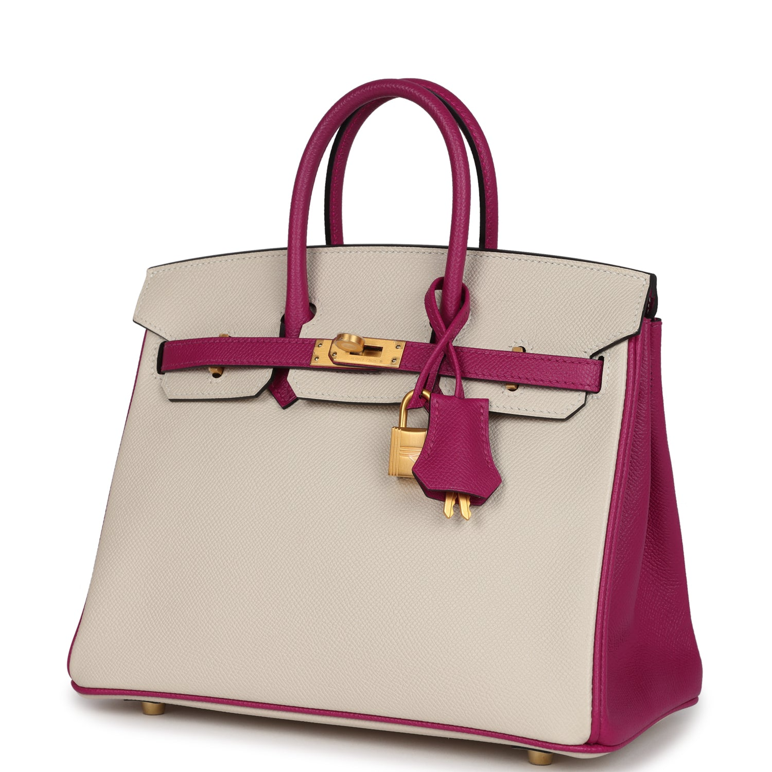Hermès Special Order (HSS) Birkin 25 Craie and Rose Pourpre Epsom Brushed Gold Hardware
