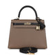 Special Order (HSS) Kelly Sellier 25 Black and Etoupe Chevre Mysore Permabrass Hardware