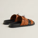 Techno-sandal in suede goatskin with anatomical rubber sole and iconic Kelly buckle.