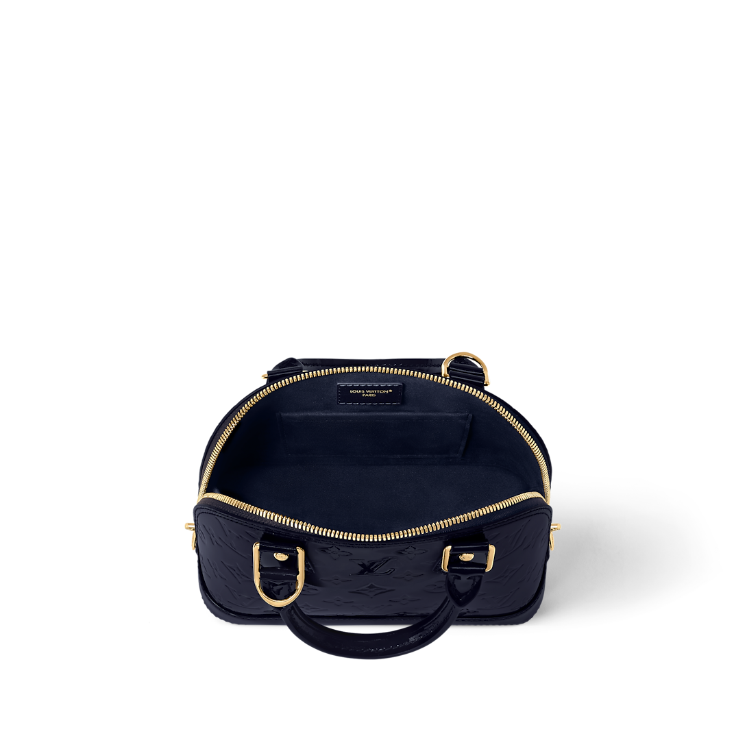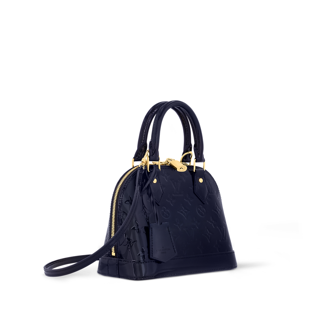 Introducing the iconic Alma BB handbag in an exquisite shade of Sapphire Blue, designed exclusively for the LV Mirage collection. It is crafted from patent leather, which offers a subtle sparkling finish and is elevated with gold-toned hardware. Signature details include a padlock and keybell, symbolizing the House’s savoir-faire and quality craftsmanship. Carry it by hand or use the removable strap to wear it cross-body.