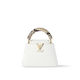 For Summer 2020, the Capucines Mini handbag in Taurillon leather features a top handle and LV Initials wrapped in precious python leather. The bag’s distinctive shape is perfectly complemented by the touches of exotic leather. The wide removable strap ensures comfortable shoulder or cross-body carry.