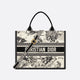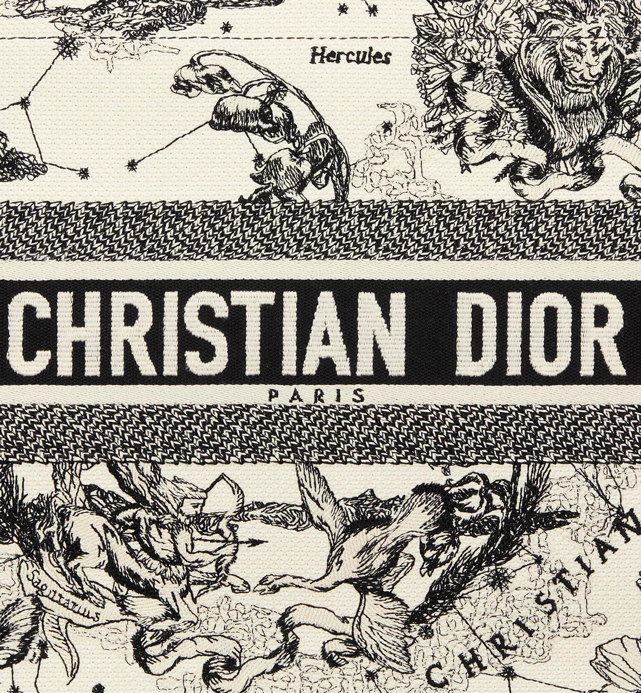 Maria Grazia Chiuri's hallmark Dior Book Tote offers an original take on elegance with a motif inspired by Mr. Dior's passion for astrology. The refined style combines black calfskin with the iconic latte and black Dior Zodiac embroidery. Designed to keep all the daily essentials organized, the interior is equipped with a zip pocket and slip pockets. Featuring an adjustable and removable shoulder strap, the practical medium tote exemplifies Dior's savoir-faire and can be carried by hand or worn over the shoulder.
