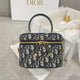 Chic and compact vanity-style handbag with all-over monogram canvas and top handle. ??