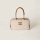 The neutral shades of canvas, enhanced by the leather trim and logo in a contrasting color, highlight the artisanal charm and dynamic silhouette of the iconic Beau bag.