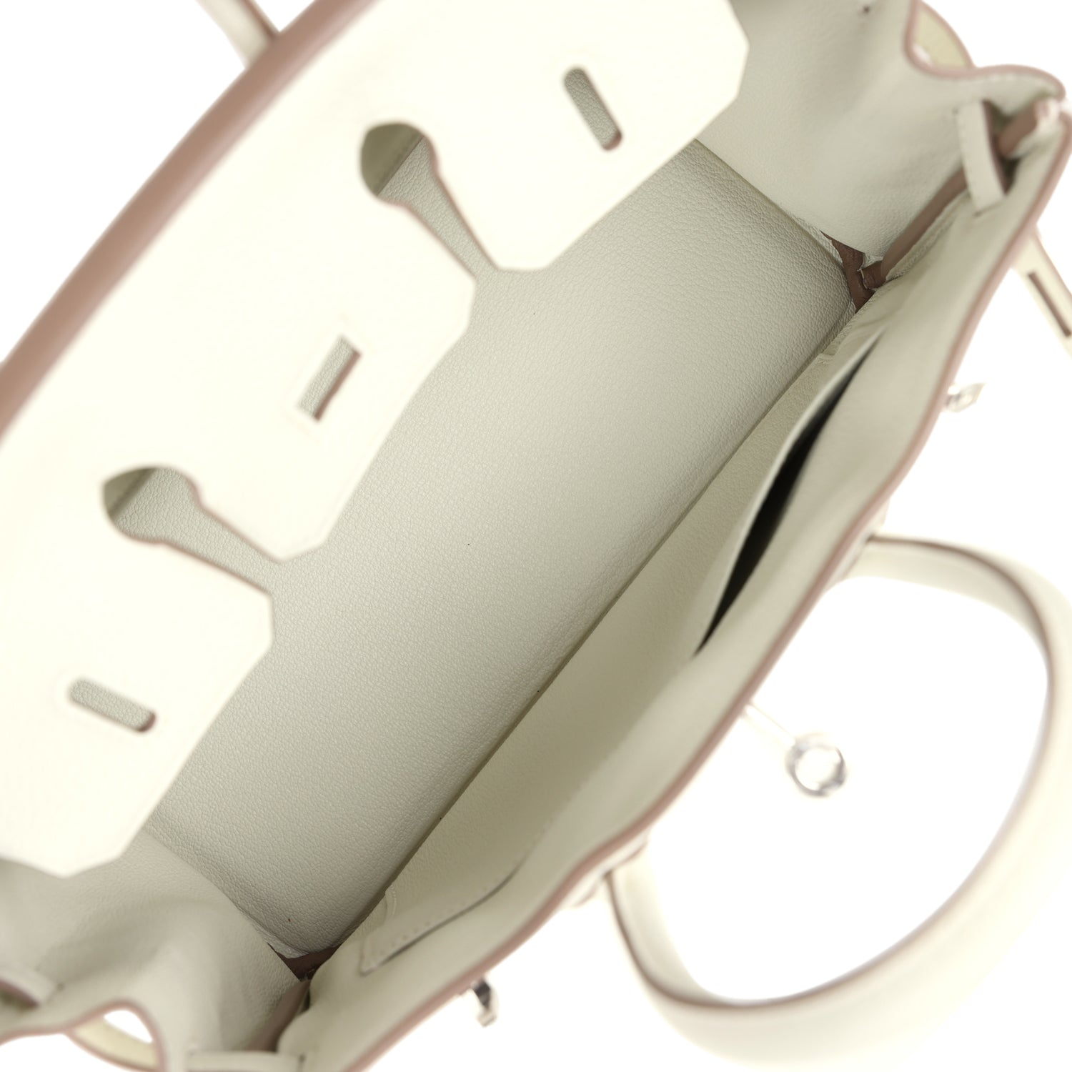 The interior is lined with Mushroom chevre leather and has one zip pocket with an Hermès engraved zipper pull and an open pocket on the opposite side.