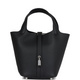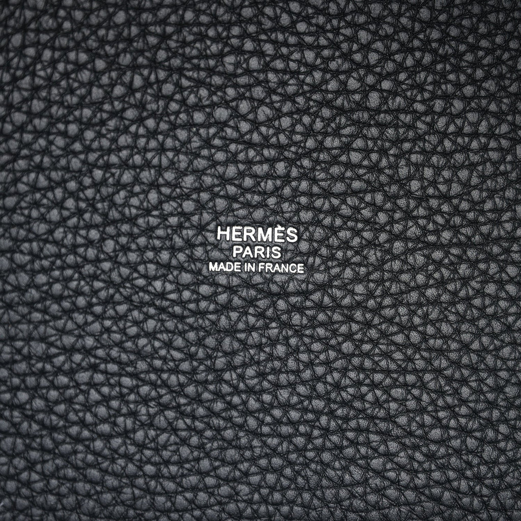 This Picotin Lock is in Black clemence leather with palladium hardware and has tonal stitching with two top handles.