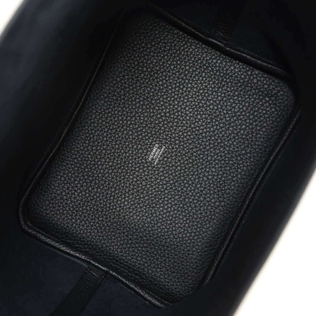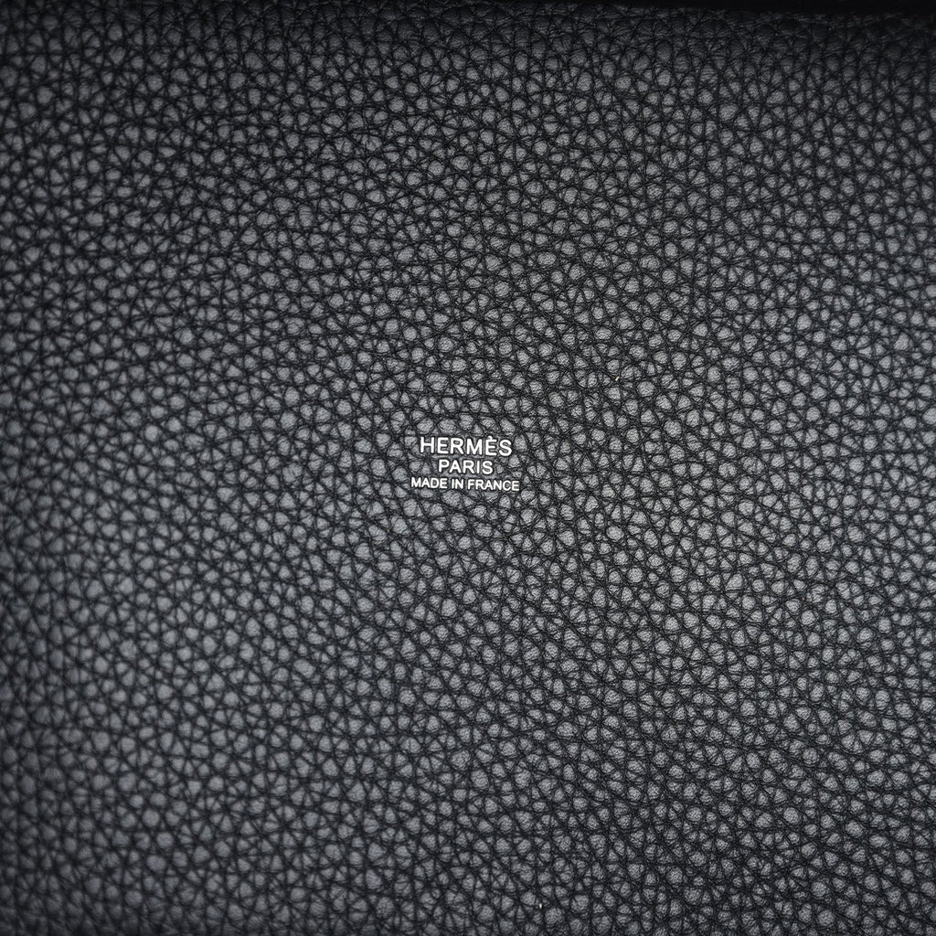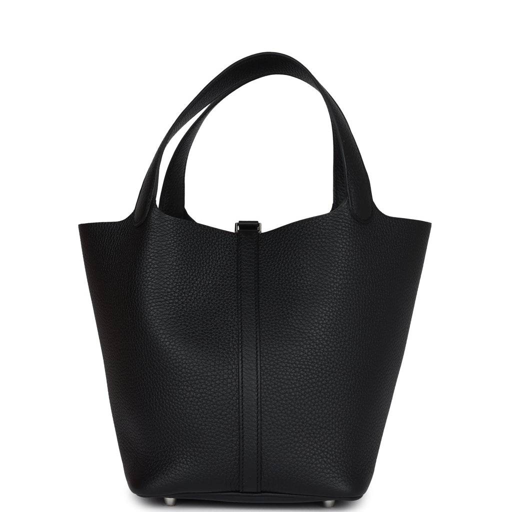 This Picotin Lock 22 is in Black clemence leather with palladium hardware and has tonal stitching with two top handles.