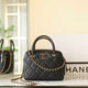 A structured satchel featuring a quilted design and compact boxy shape. Includes dual top handles and a long chain strap, offering a balance of classic style and everyday versatility.