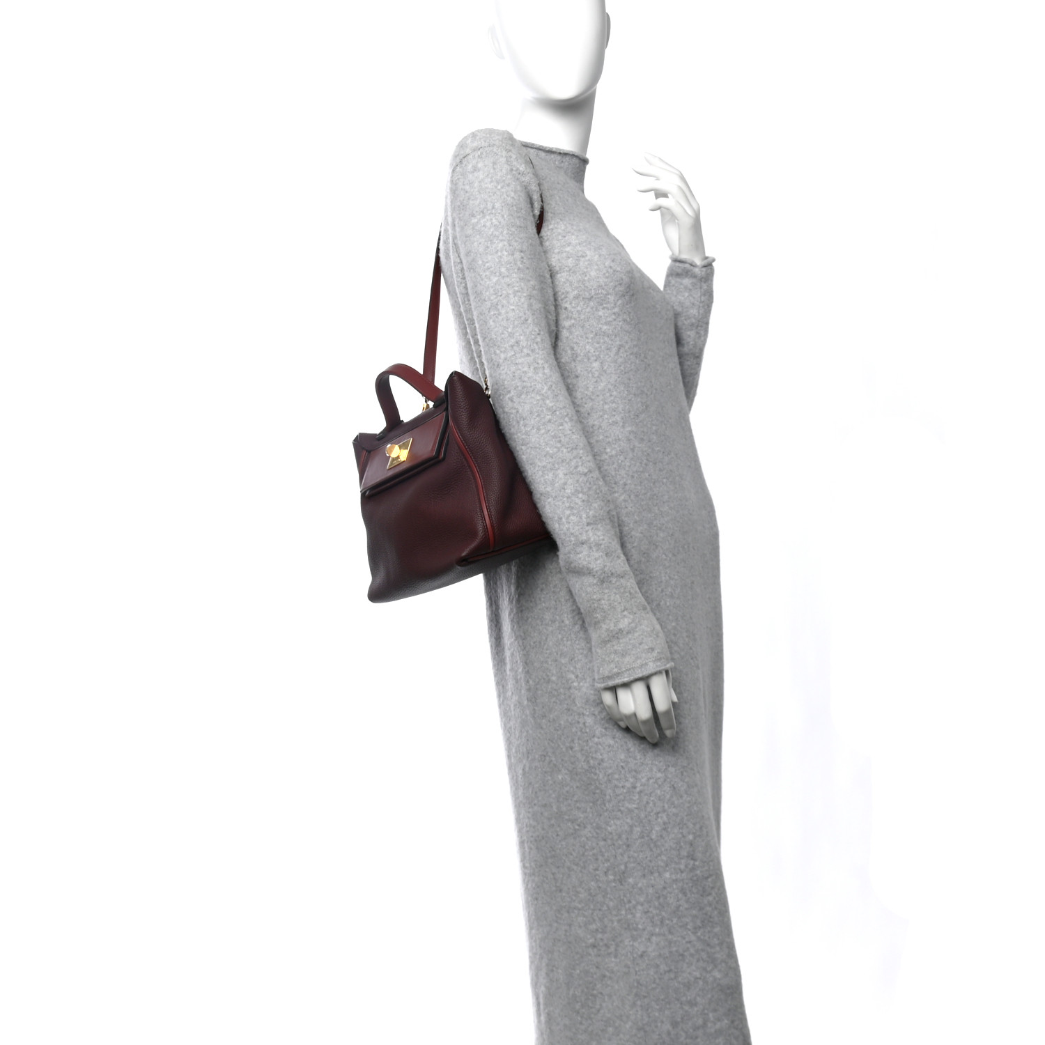 This is an authentic HERMES Taurillon Maurice Swift 24/24 29 in Bordeaux and Rouge Grenat. This handbag is crafted of richly textured calfskin leather in burgundy. The bag features a reinforced leather top handle, an optional leather shoulder strap, and gold hardware including a padlock. The flap opens to a goatskin leather interior with a zipper pocket. This is an iconic and very sought after handbag, ideal for occasions that call for the luxury and style only from Hermes!