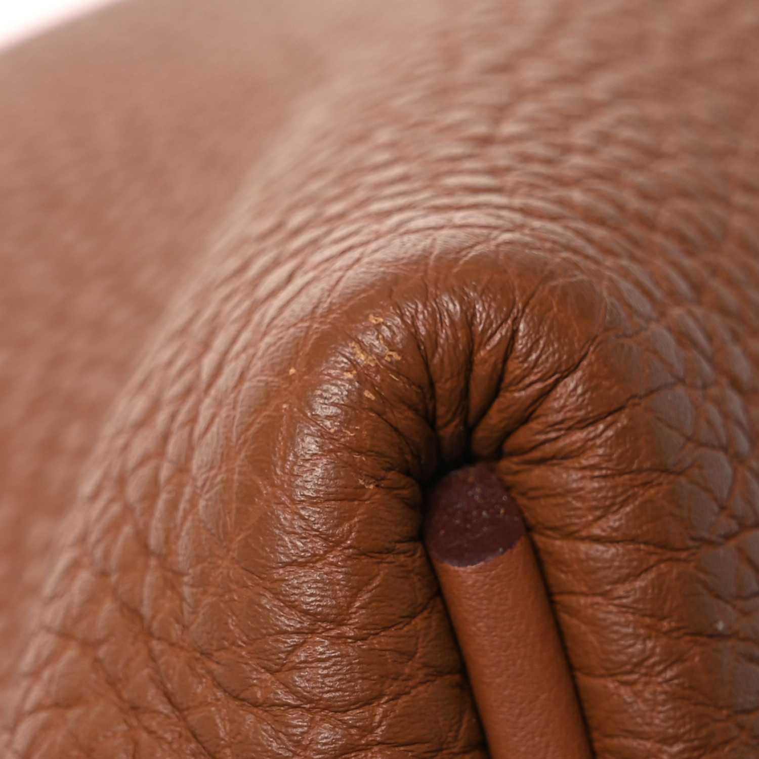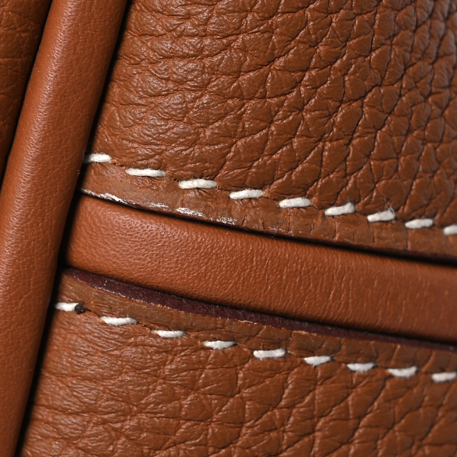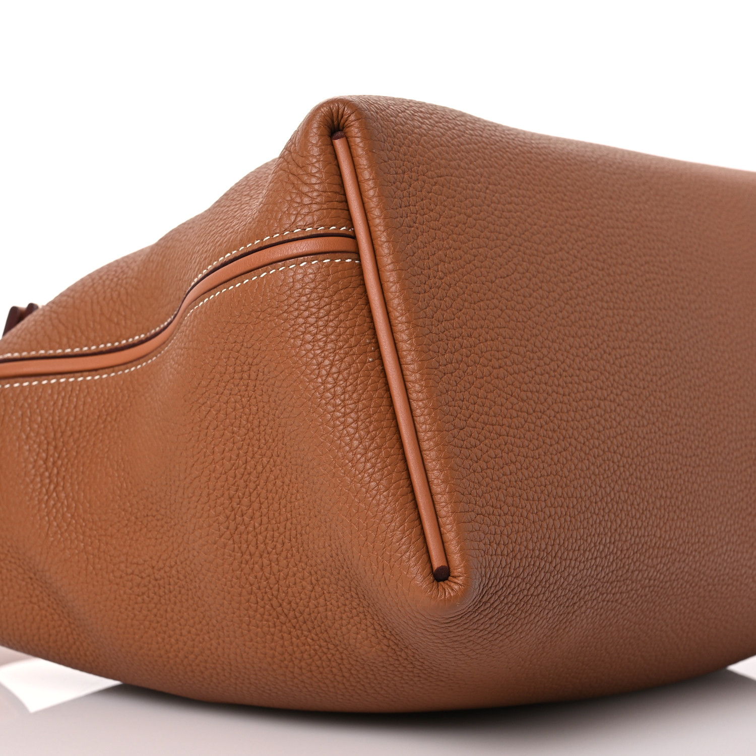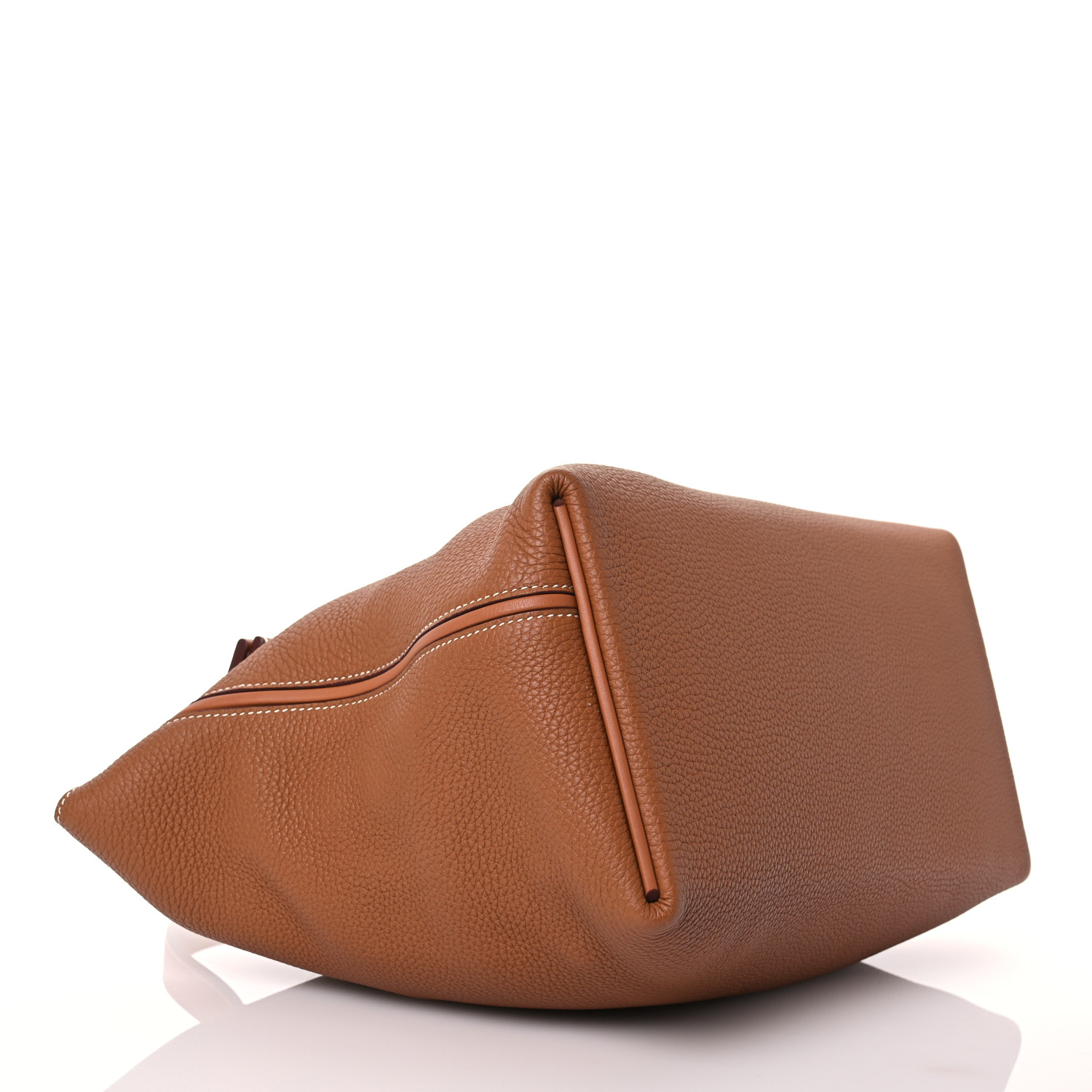 This is an authentic HERMES Togo Swift 24/24 35 in Gold. This handbag is crafted of richly textured calfskin leather in brown. The bag features a reinforced leather top handle, a rear patch pocket, and polished gold hardware. The flap opens to a smooth leather interior with a zipper pocket.