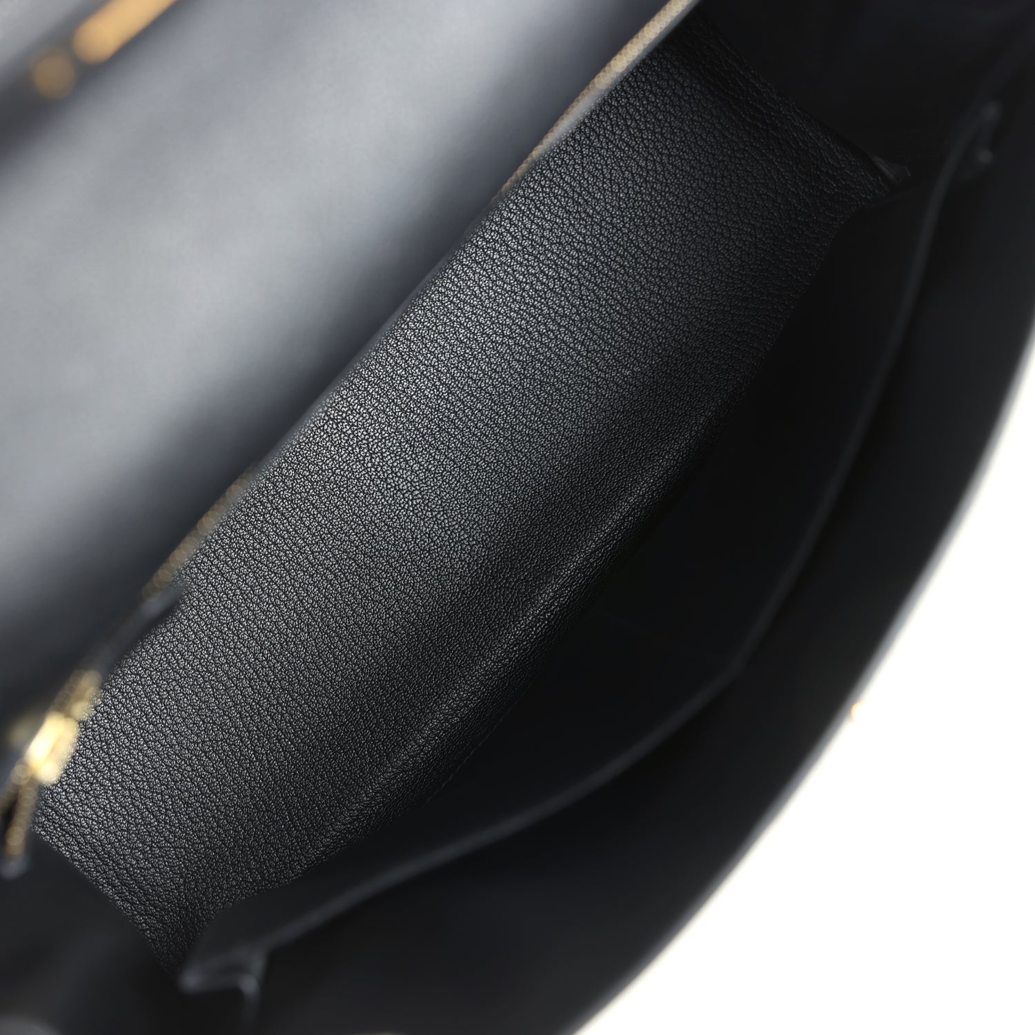 The interior is lined with Black chevre leather and has one zip pocket with an Hermès engraved pull and two open pockets on the opposite side.