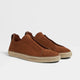 A lighter version of Zegna's iconic sneakers, the Foliage-colored suede Triple Stitch™ espadrilles combine an unexpected mix of materials to create a chic look. Underneath the rich suede, the espadrilles' iconic roped midsoles are paired with lightweight rubber soles. Their signature triple-crossed elastics keep them secure while evoking the traditional hand-stitching of tailored jackets, a tribute to the brand's legacy.